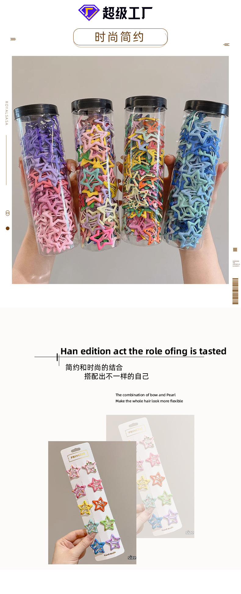 Star dopamina horquilla femenina 2025 nuevo estilo clip lateral para cabello roto clip lateral flequillo clip de pico de pato clip horquilla tocado