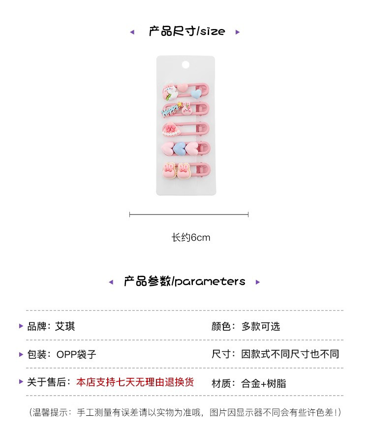 | Color | 4 juegos de 5 clips de pico de pato púrpura, 3 juegos de 5 clips de pico de pato azul, 2 juegos de clip de pico de pato rosa, 1 juego de clip de pico de pato amarillo, 14 estrellas amarillas, 14 lazos morados, 14 sandías verdes, 14 flores rosas, 14 conejos rosados y azules, 8 Juegos de 8 piezas de rosa y azul, 8 Juegos de 8 piezas de amarillo y verde, 8 piezas de rosa y morado, 8 piezas de amarillo y rosa. |