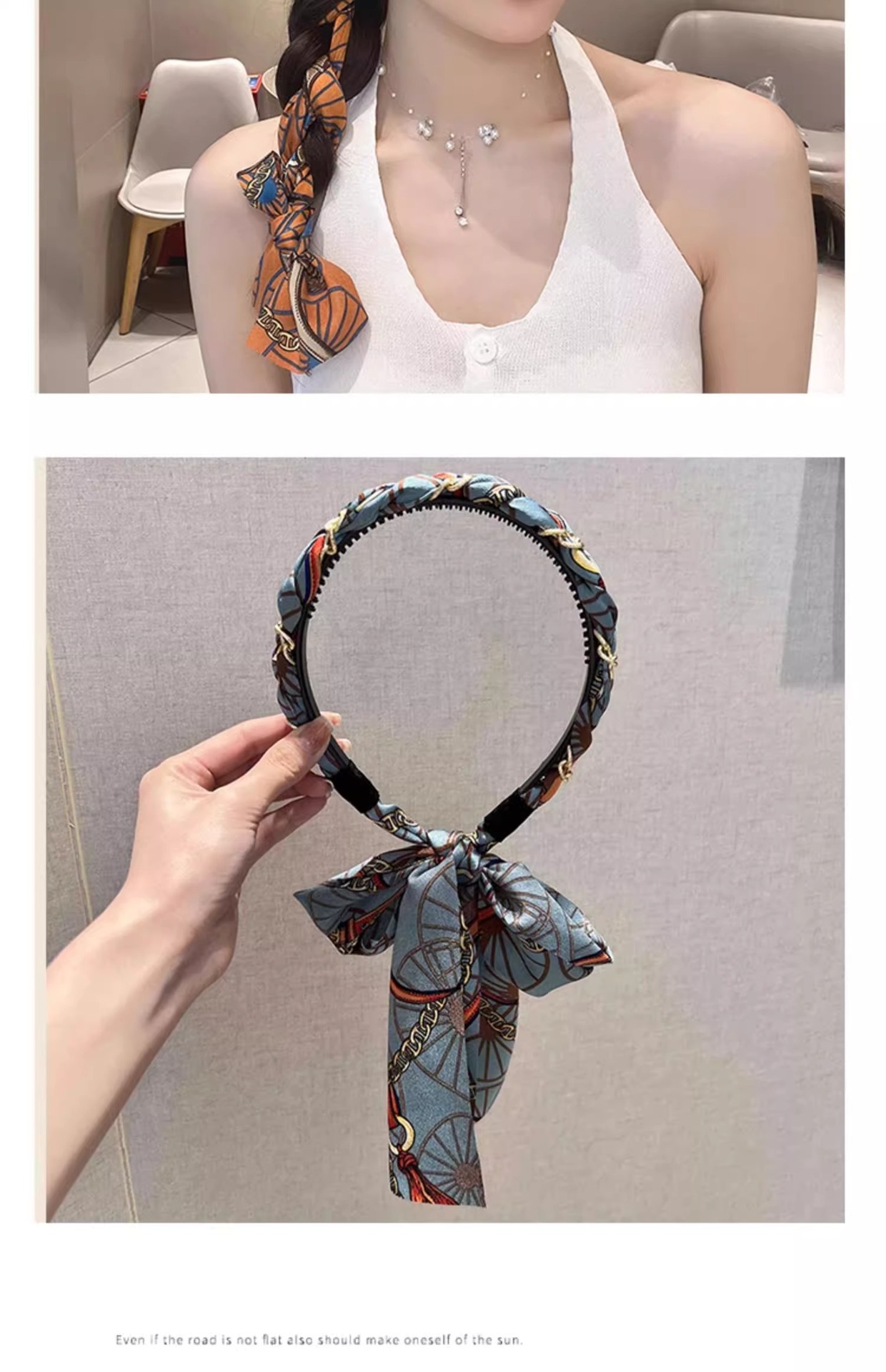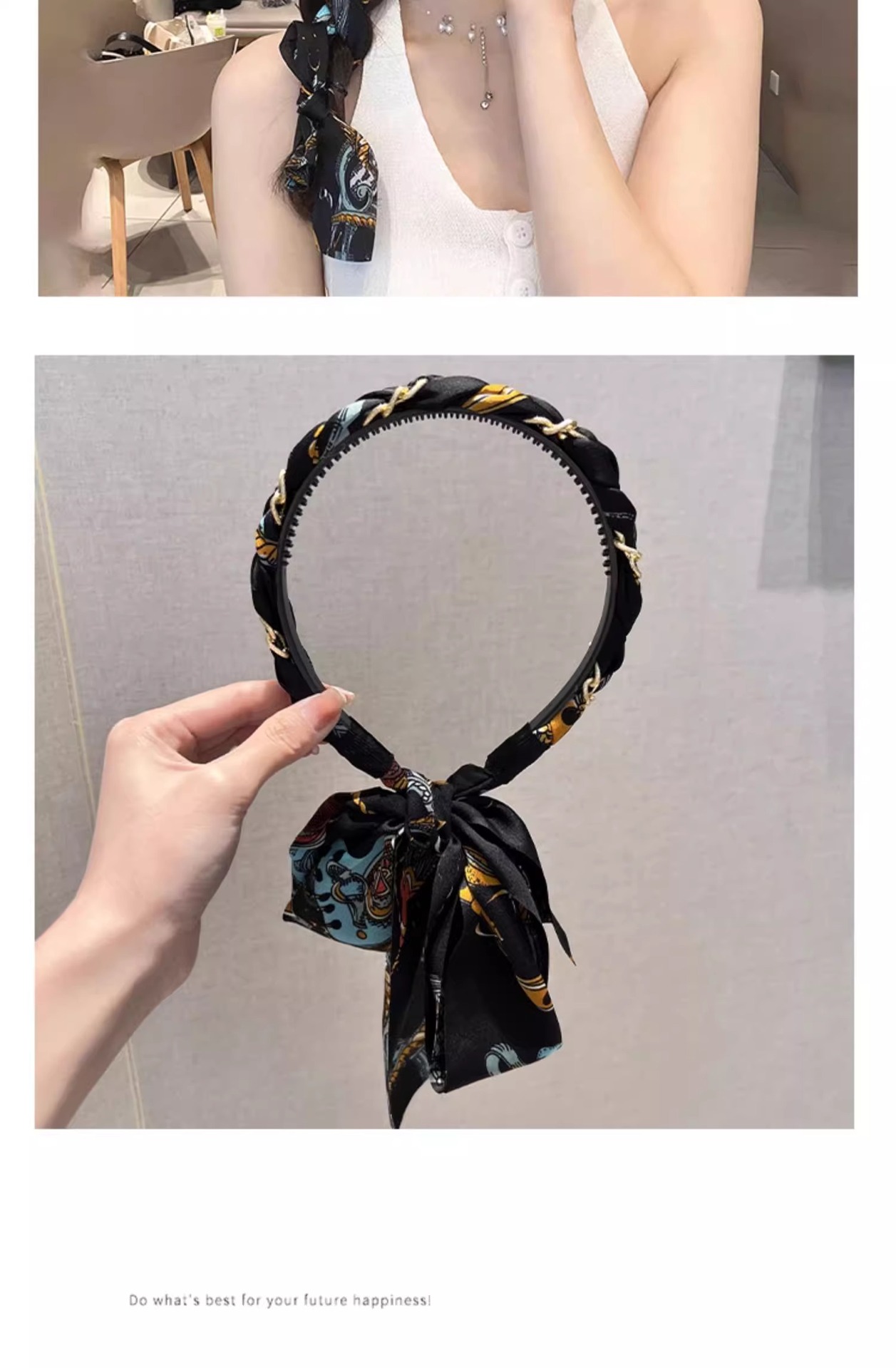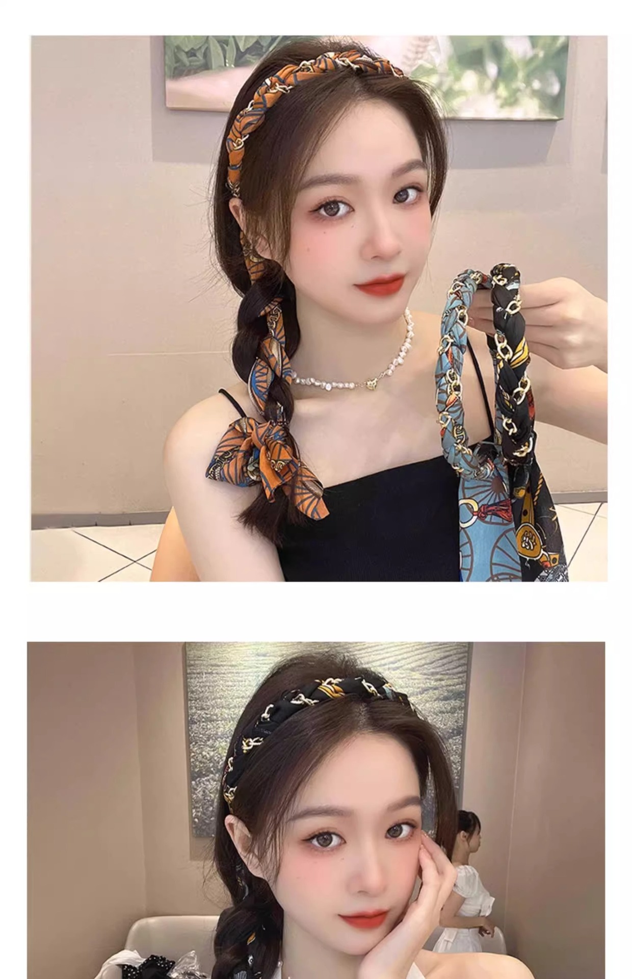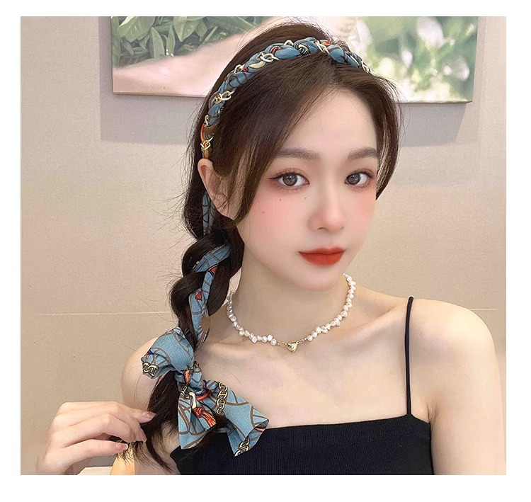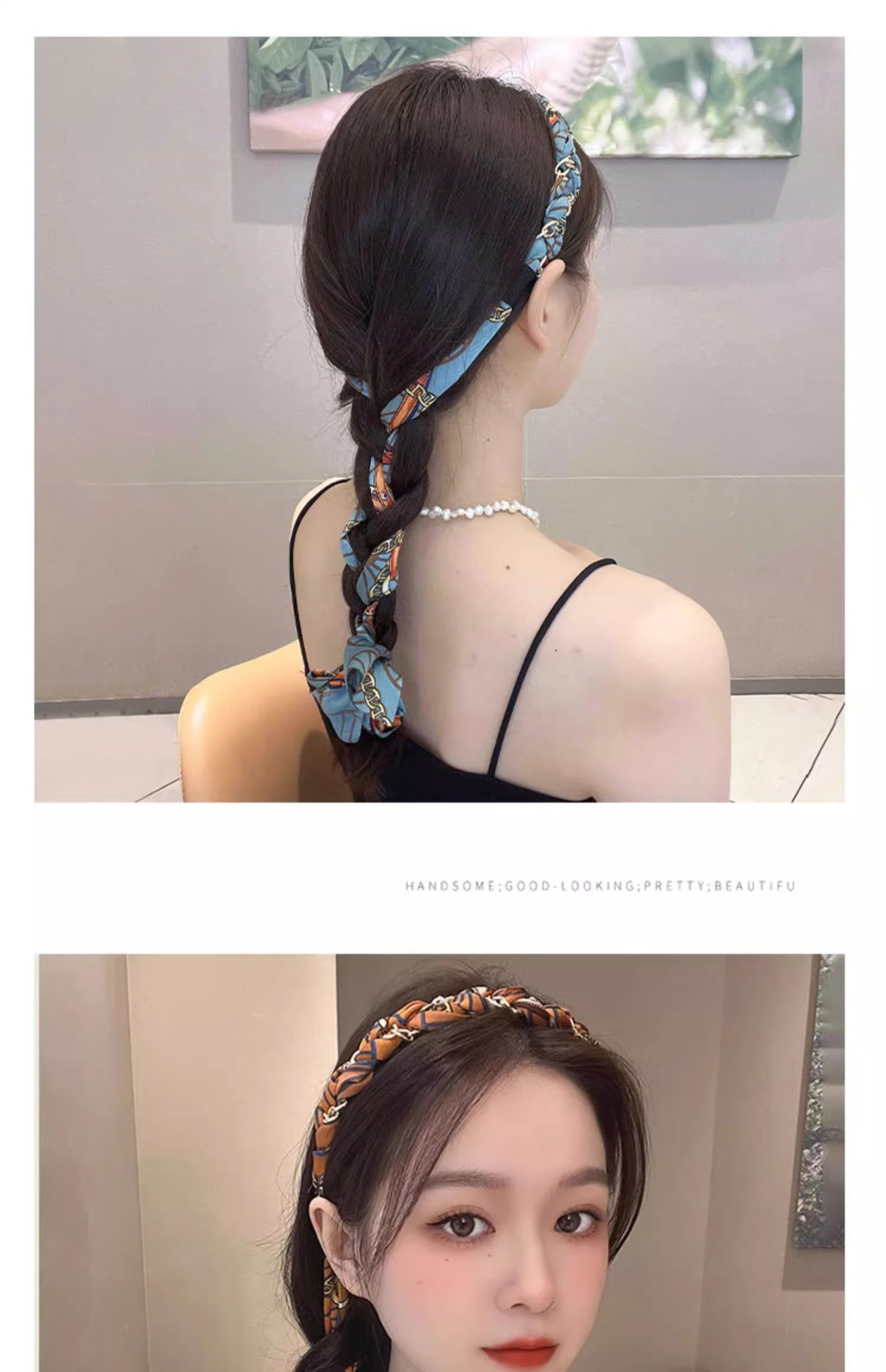 Sensor de alto nivel de banda de cabello para mujeres de alta presión craneal tarjeta de cabello temperamento de moda trenzada bufandas de seda banda de cabello adornamiento para el cabello