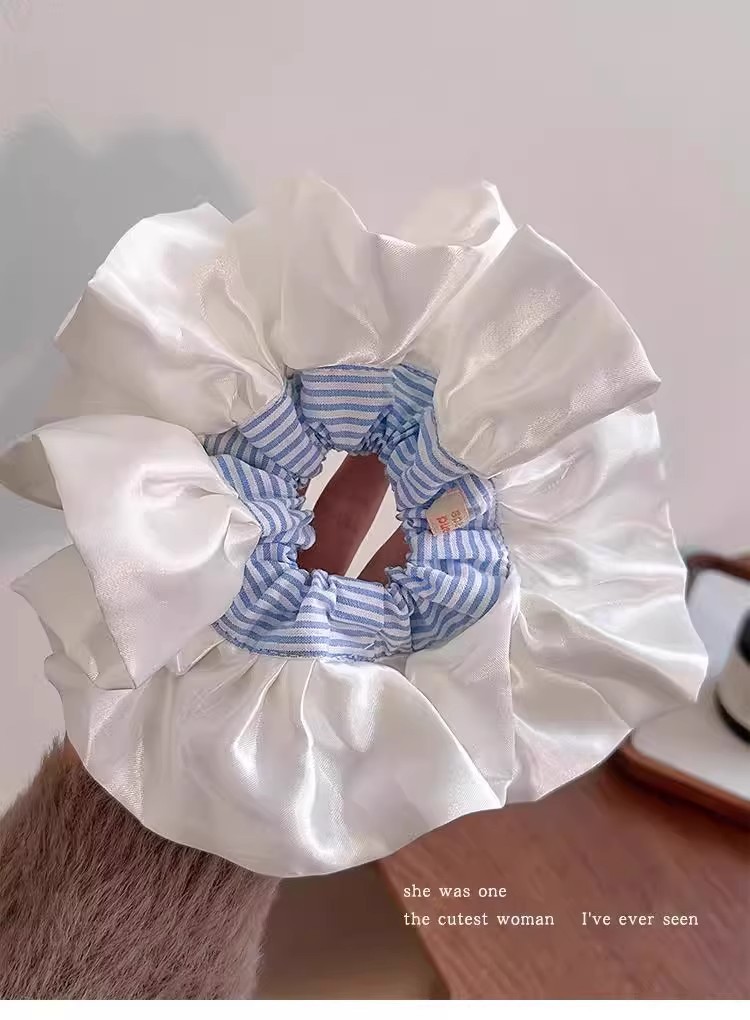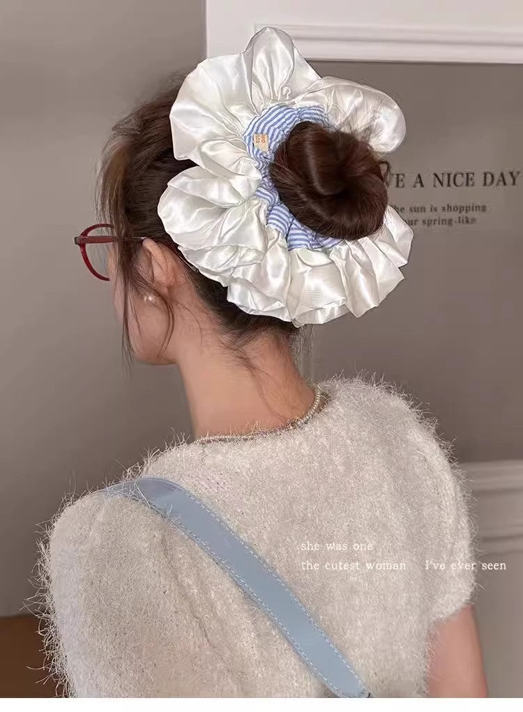 Ballet estilo crema satén intestino grueso lazo para el cabello cabeza de bola de gran tamaño en la parte posterior de la cabeza cuerda para el cabello bufanda cuadrada de sentido avanzado cuerda para la cabeza mujer