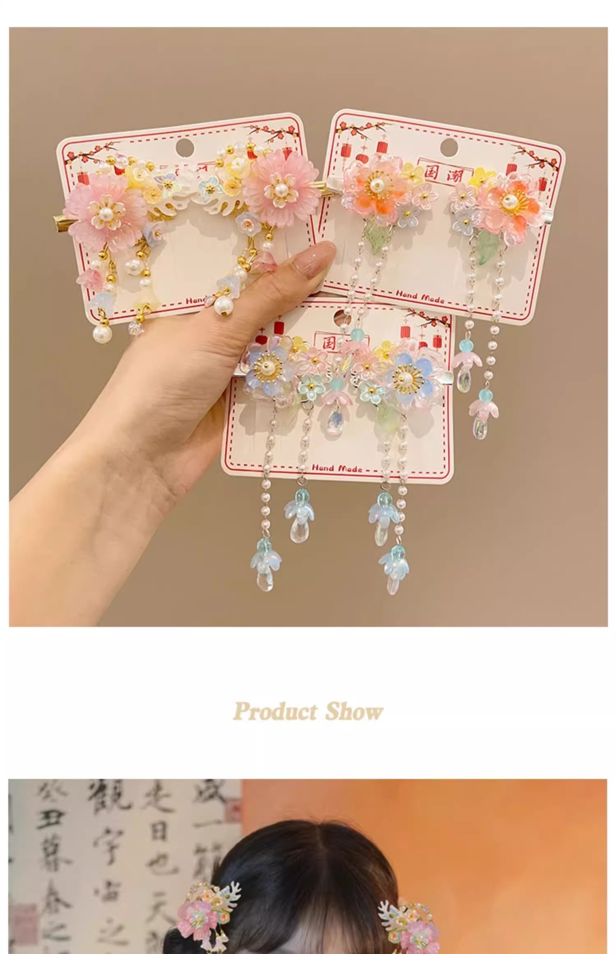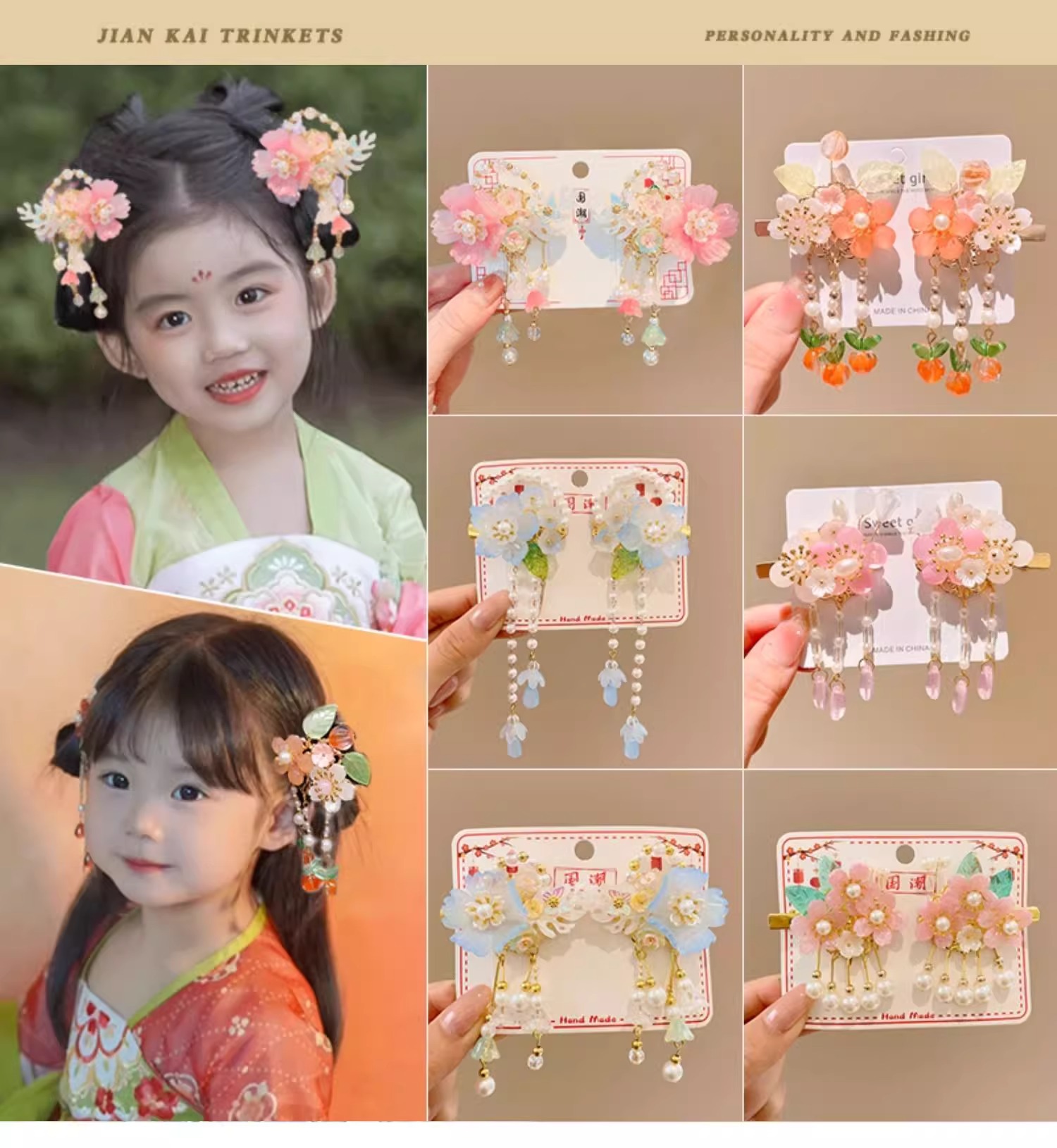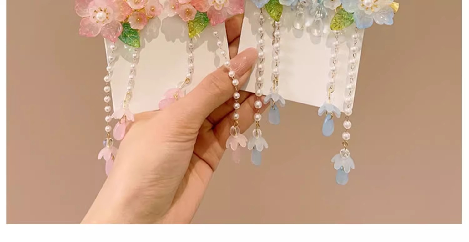 Niños flores antiguas brocas de cabello nuevo estilo chino princesa tocado de cabello de niña Hanfu Lisping paso mecedor accesorios tarjeta de cabello
