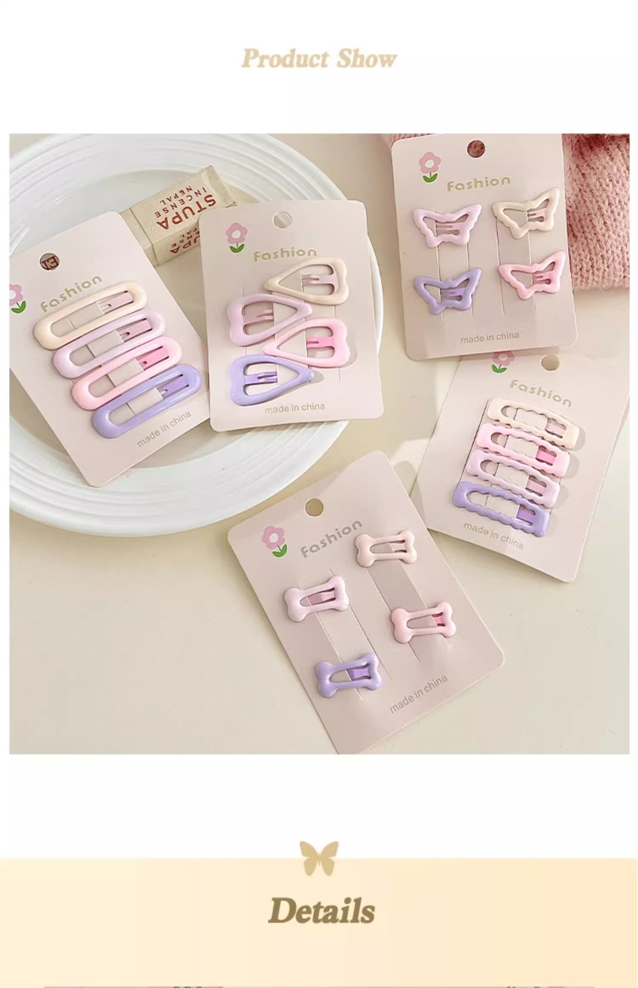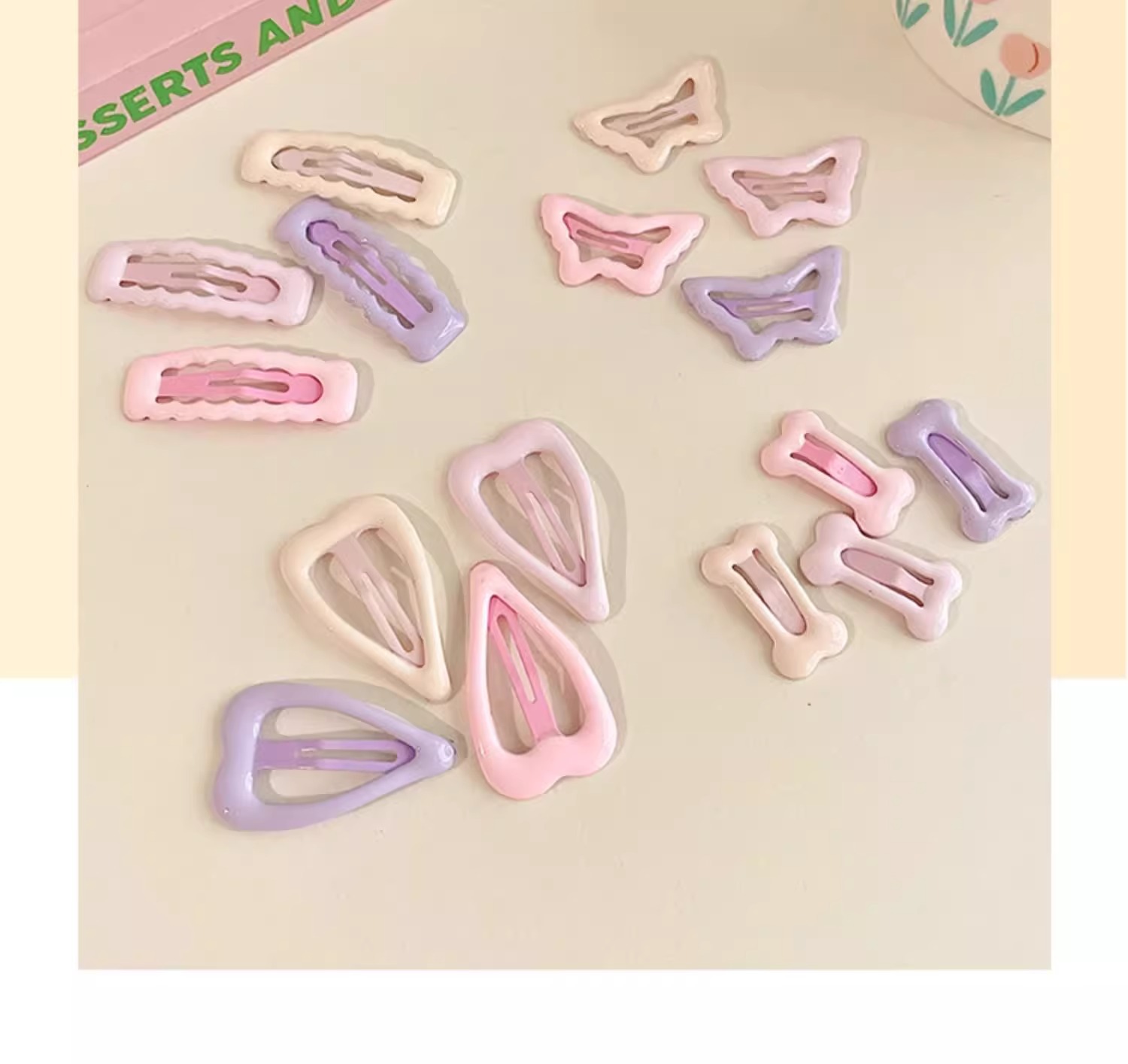 | Color | 5 ¿ Water Drop love 4. , 6 ¿ 4 huesos rosas y morados. , 7 ¿ 4 elípticas rosas y moradas. , 8 mariposas rosas y moradas 4. , 9 ¿ 4 elípticas de olas rosas y moradas. |