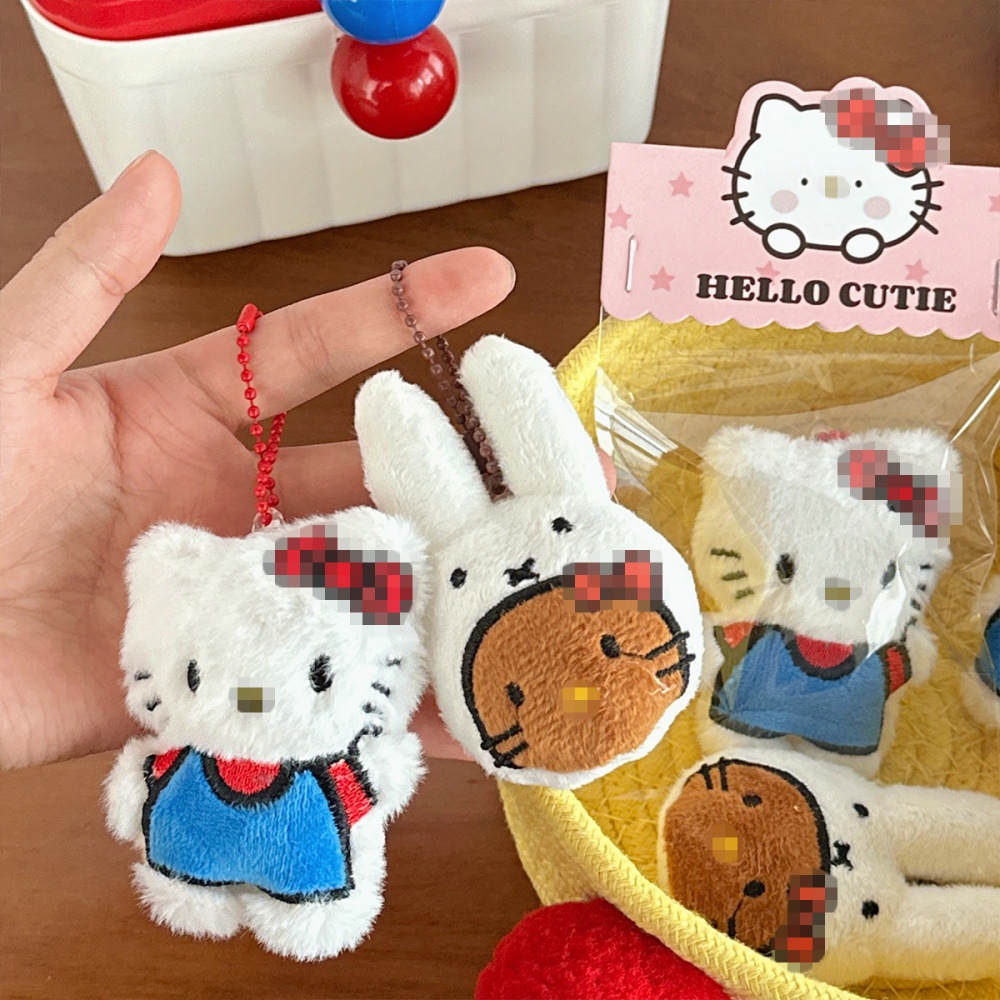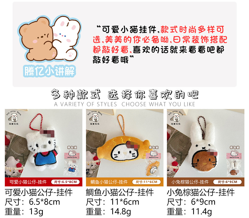 Lindo gato de dibujos animados muñeco de peluche colgante niña corazón bolso accesorios llavero de todo fósforo colgante regalo de novia