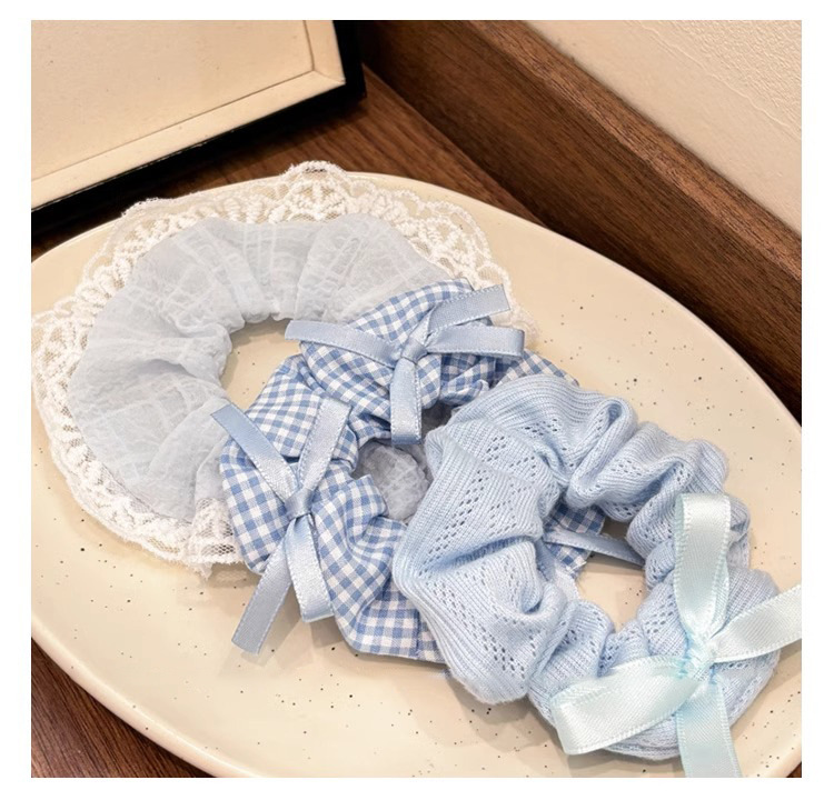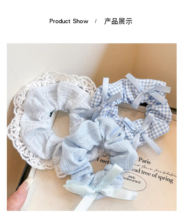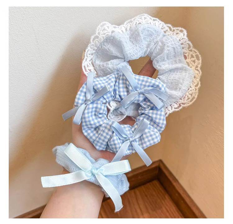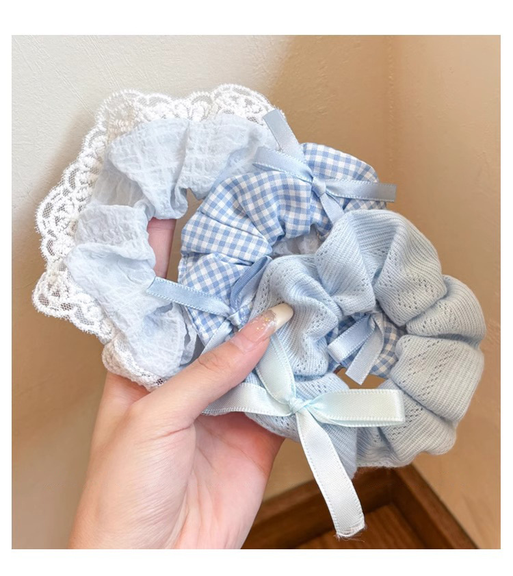 | Color | 1# encaje azul anillo para el pelo, 2# anillo de punto, 3# anillo de pelo de cuadrícula. |
