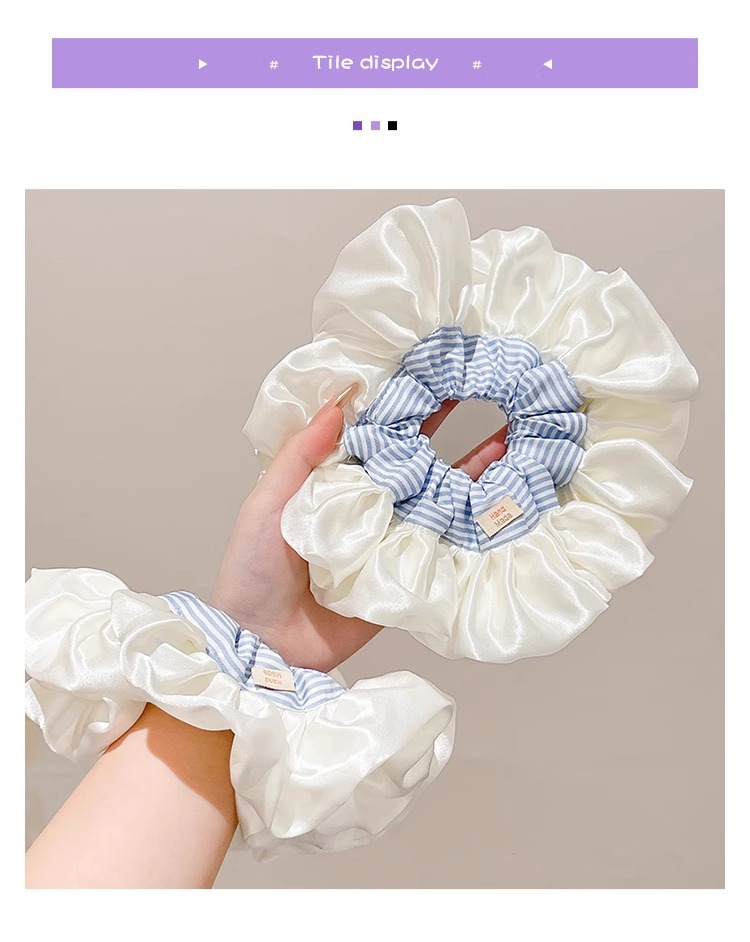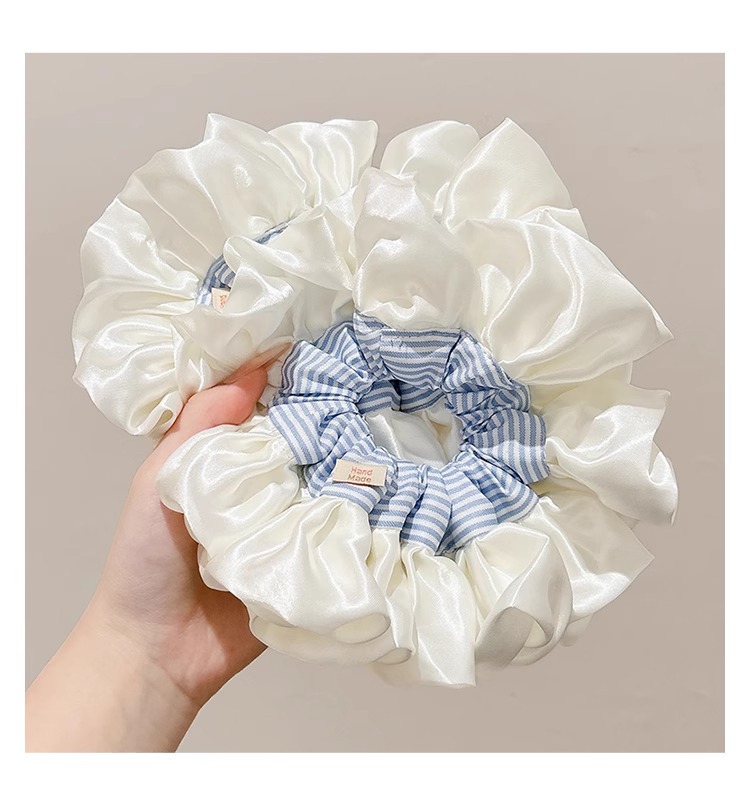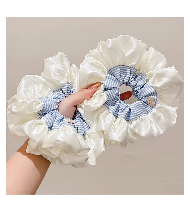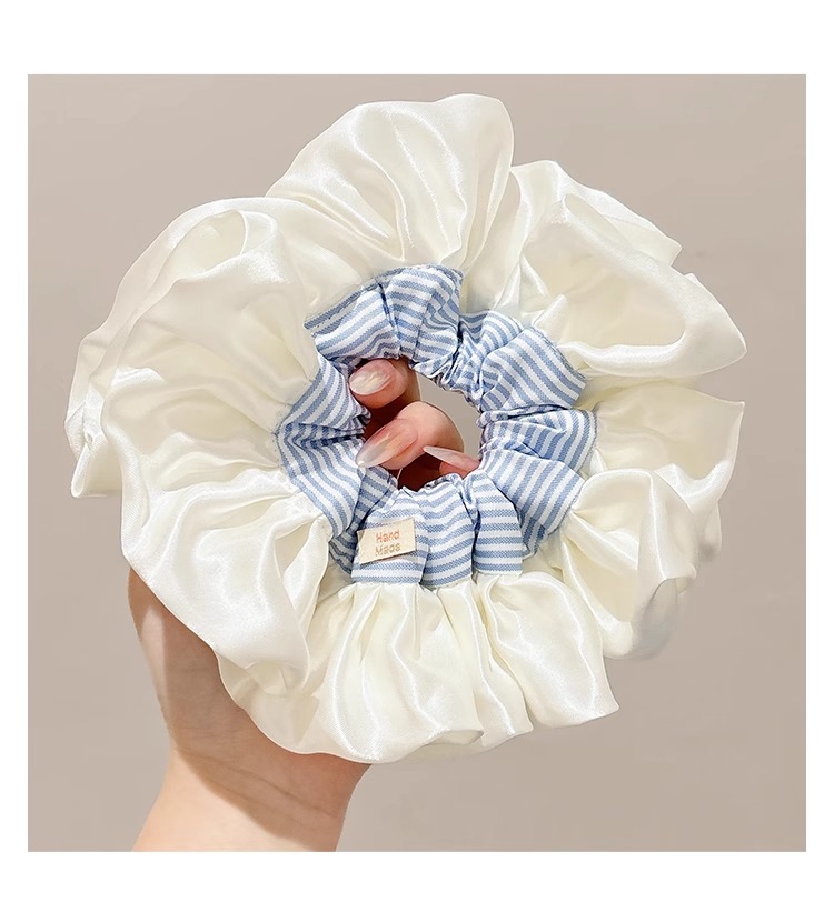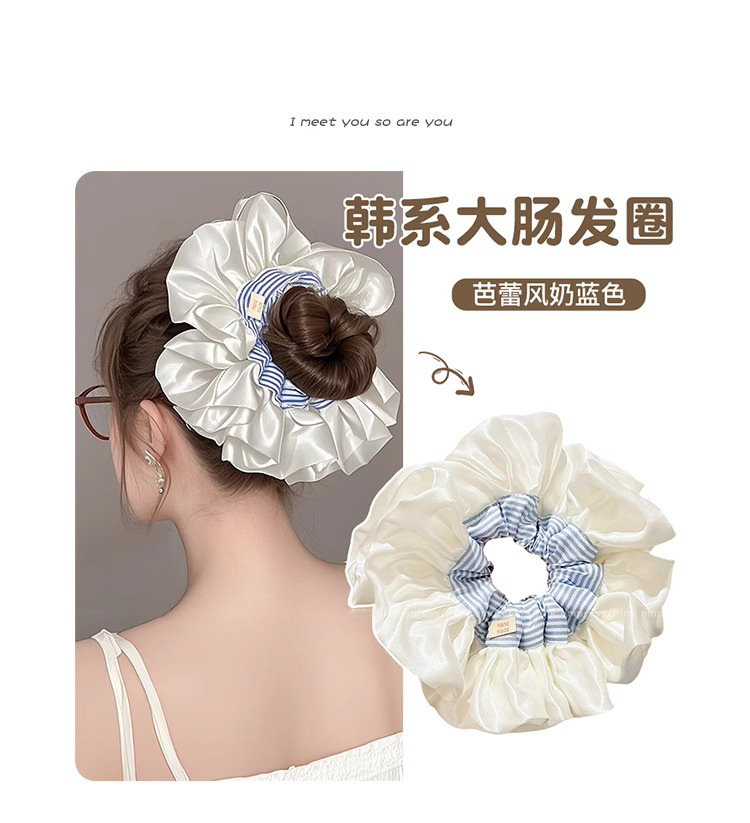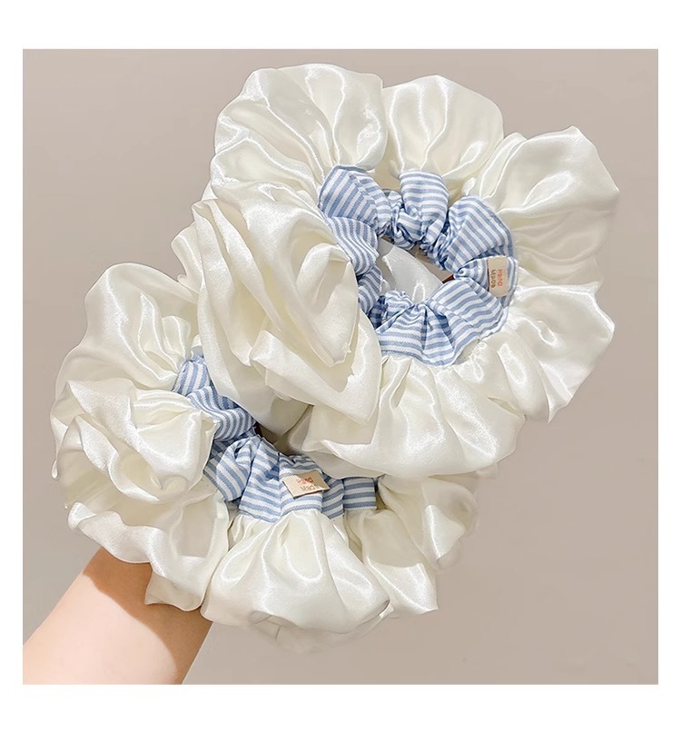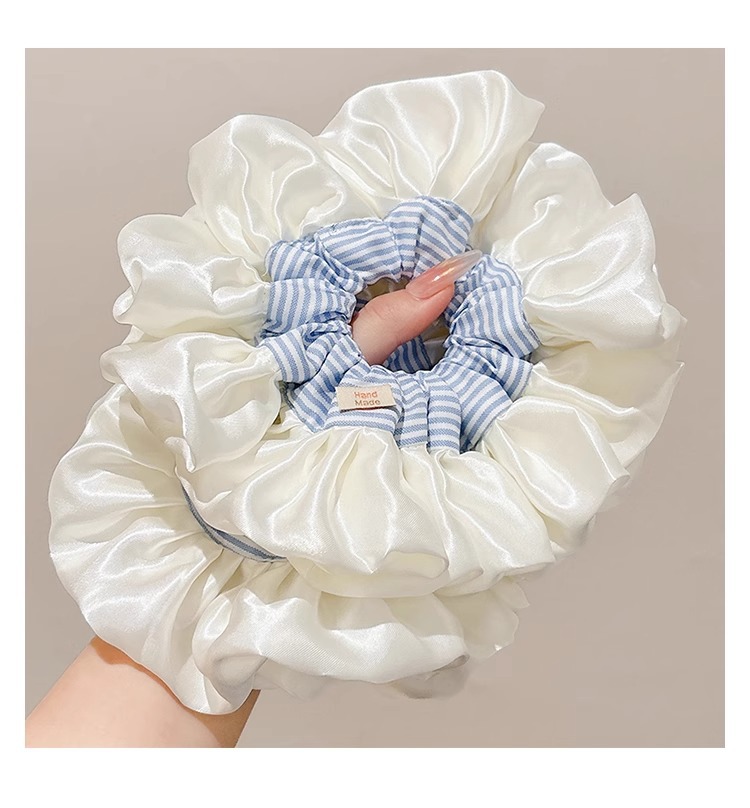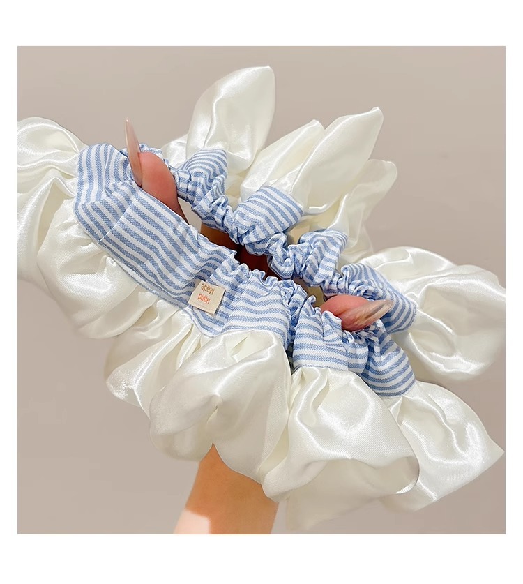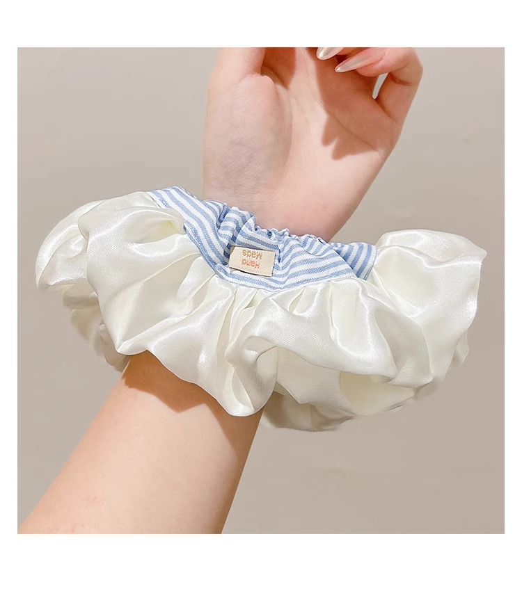 Ballet coreano crema satén rayas azules collar de cabello intestino grueso mujer sensación alta cuerda de cabello cuerda de cabeza duradera