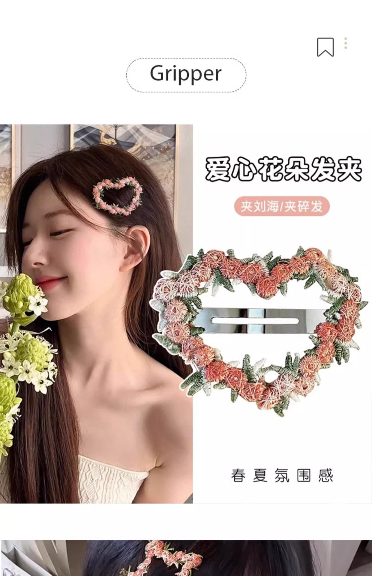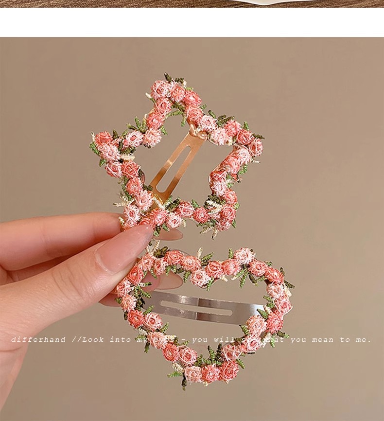 Dulces flores bordadas de primavera de alto valor visual BB clips atmósfera del corazón de una niña lateral clip de cabello de cabello de mujer