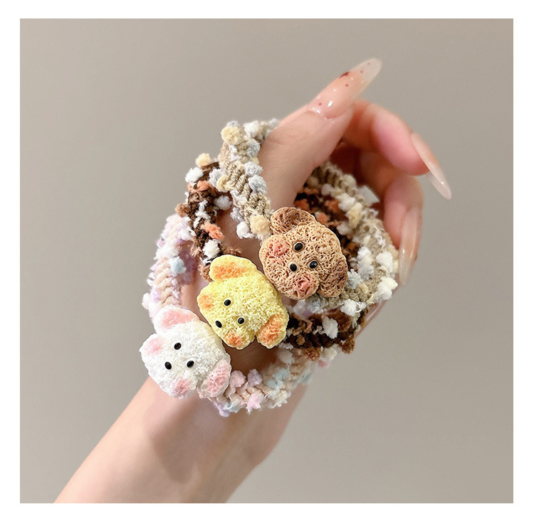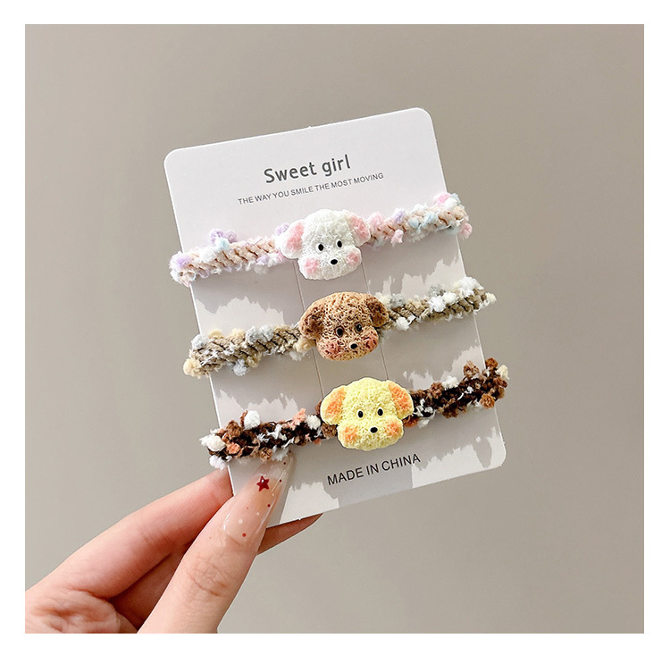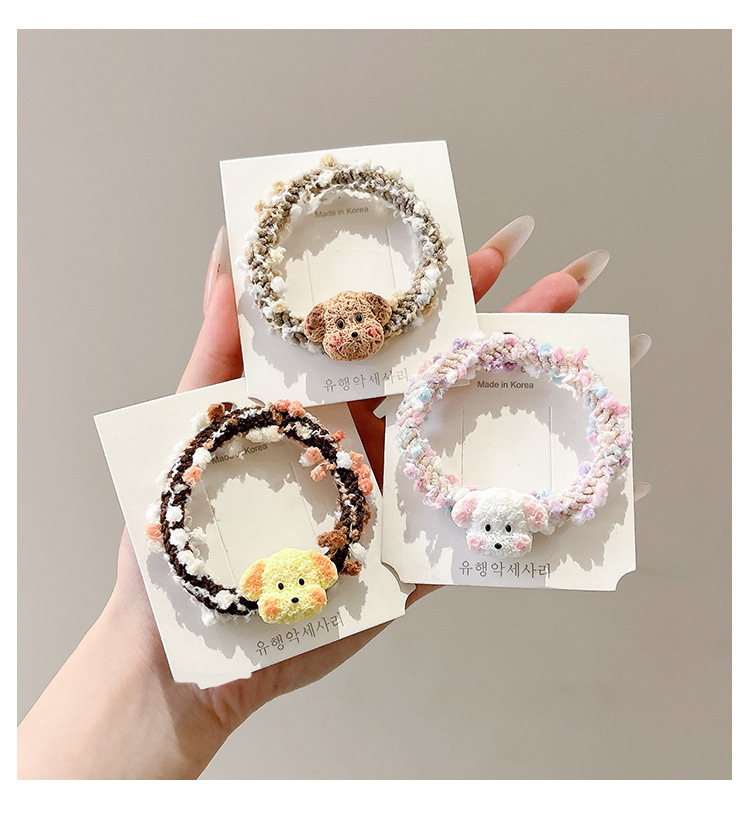 Japón lindos perros de dibujos animados peluche anillo de pelo de color nuevo ins cabello de niña cuerda de cabeza de dibujos animados de cola de caballo