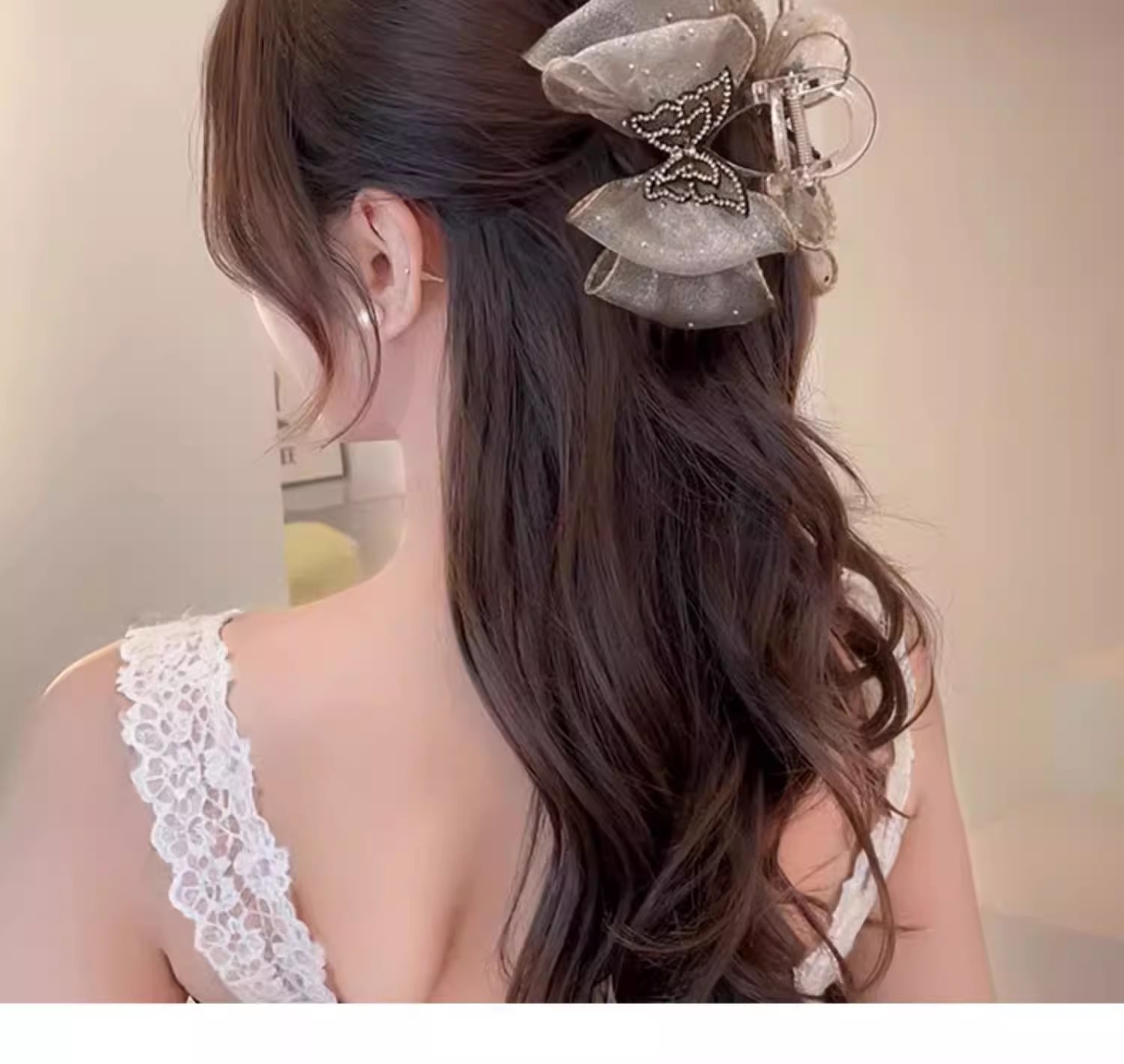 Diamante de malla sol clip clip de cabello de cola de caballo alta sensación de alta calidad clip de cabello versátil detrás del cerebro clip de pescado adornamiento para el cabello
