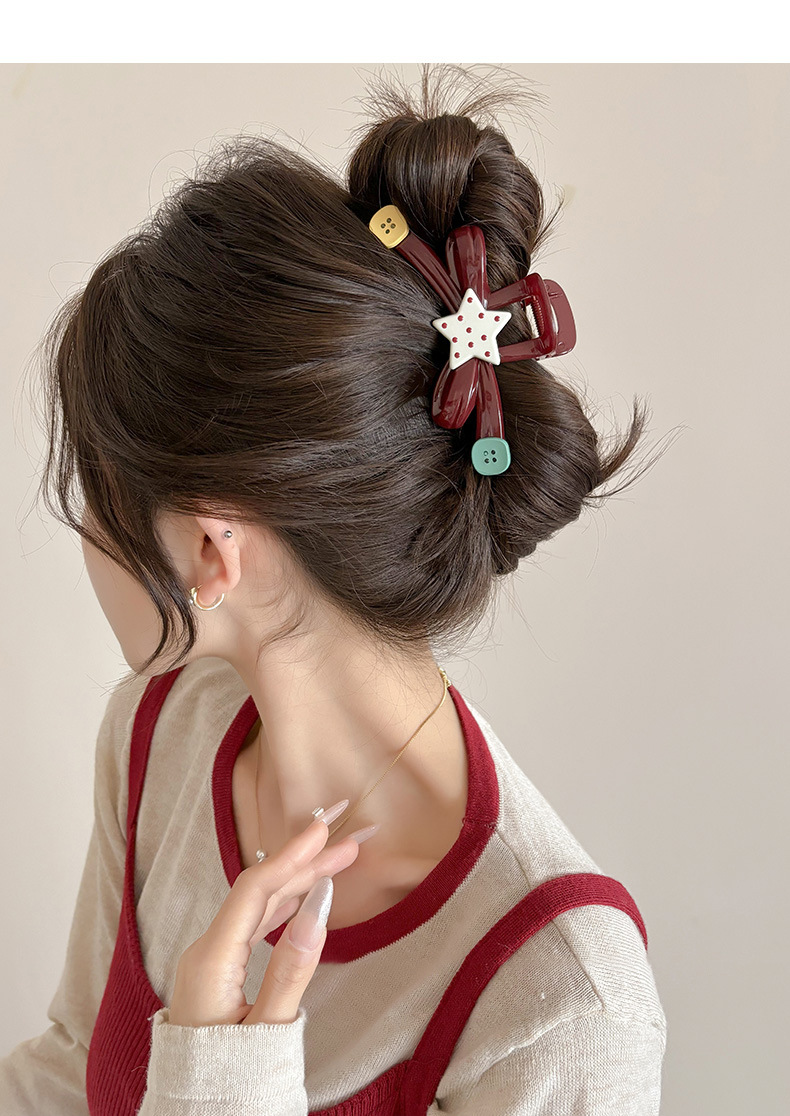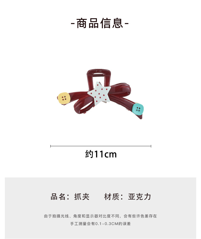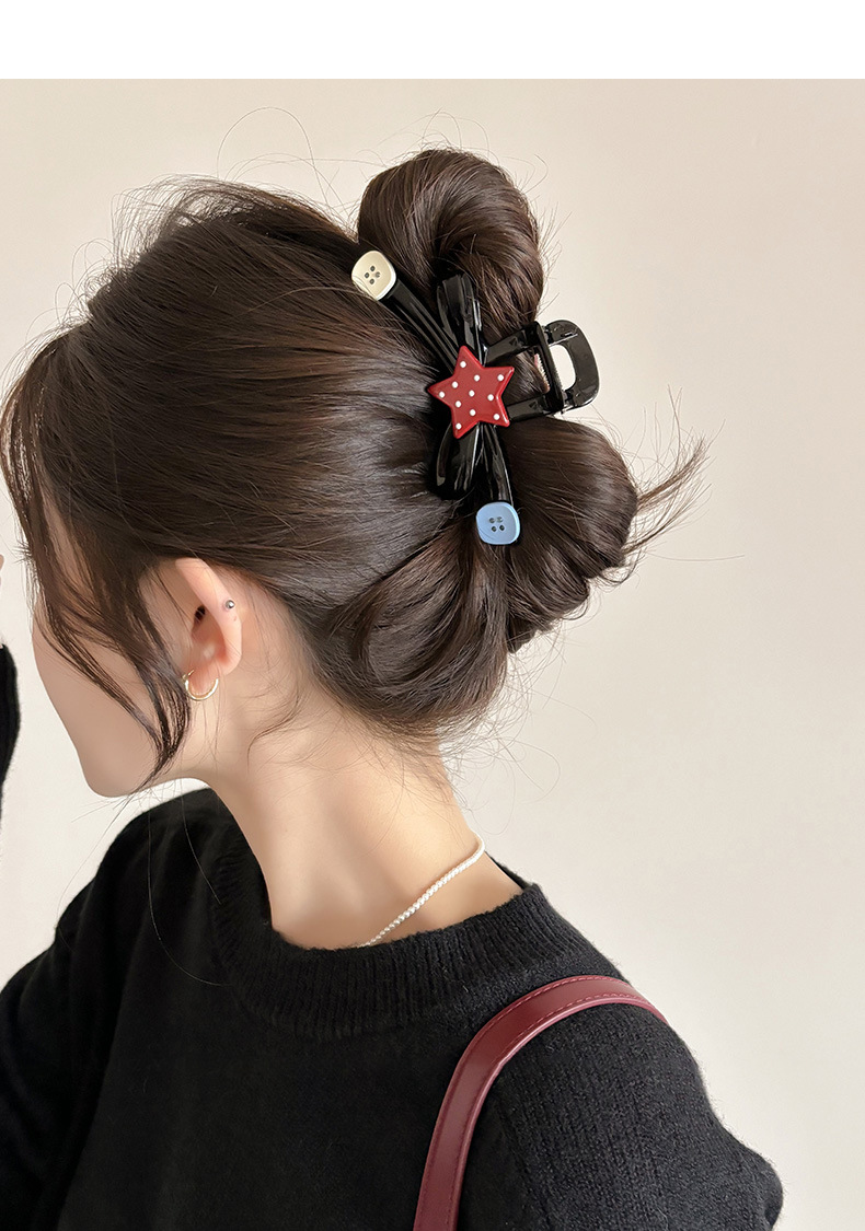 Punto de ondas estrellas botón clip de agarre classy clip de tiburón clip de cabello detrás de la cabeza adorable clip de cabello de niña clip de cabello