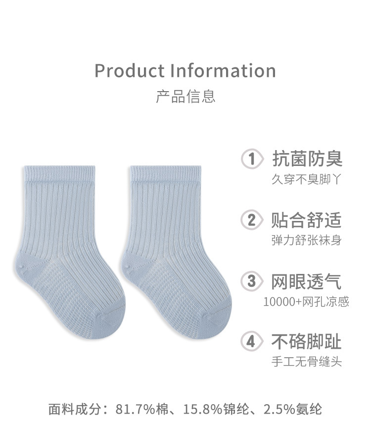 Calcetines de algodón para niños primavera y verano mallas ultra delgadas antibacterianas calcetines cómodos sin hueso para bebés recién nacidos