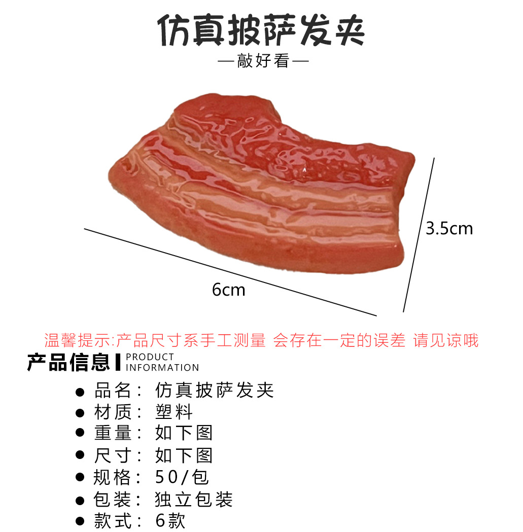 | Color | 1 # clip de costillas, 2 # clip de pelo de bola, 3 # clip de pelo de pizza, 4 # clip de pelo de kebab de cordero, 5 # clip de pelo de carne, 6 # clip de pelo de perros calientes, 5 # kiwi |