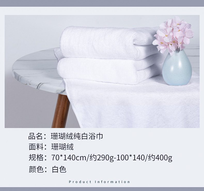 Toalla de baño blanca pura Toalla de terciopelo coral estilo adulto absorbente Hotel salón de belleza baño masaje de pies tienda Toalla de baño al por mayor