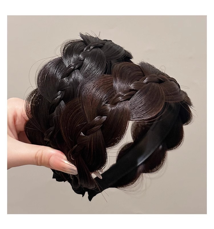 Anchos bordes trenzados de pescado pelucón de cabello para mujer cubierta cabello blanco broche de cabello con dientes antideslizante cubierta artefacto