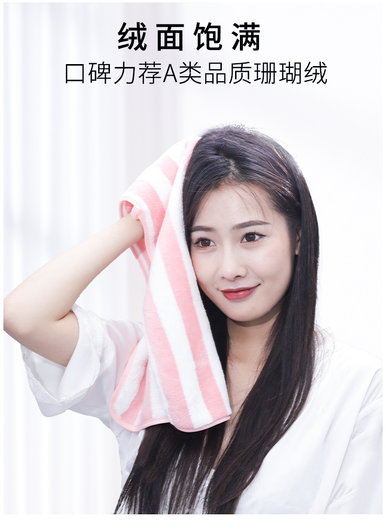 Toalla de terciopelo coral engrosada Toalla de cara de terciopelo de doble cara borde absorbente no-algodón a rayas Toalla de secado al por mayor