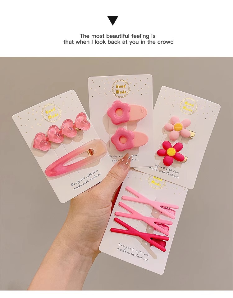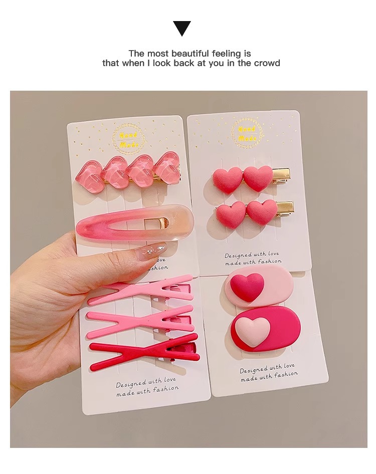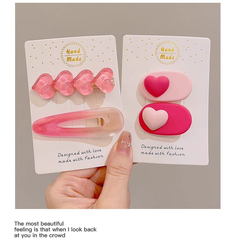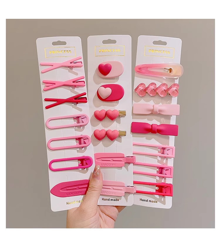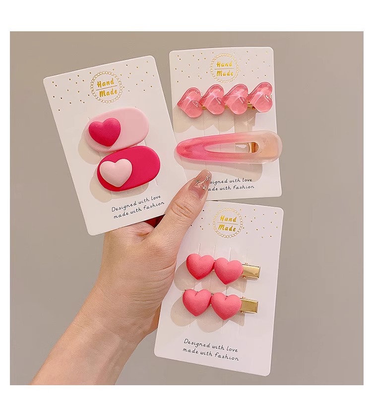 Amor gradiente pinzas de pelo rosa para mujeres verano cabello fruncado pinzas de pelo de frente lindas pinzas de boca de pato pinzas laterales pinzas tocado