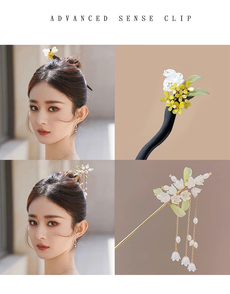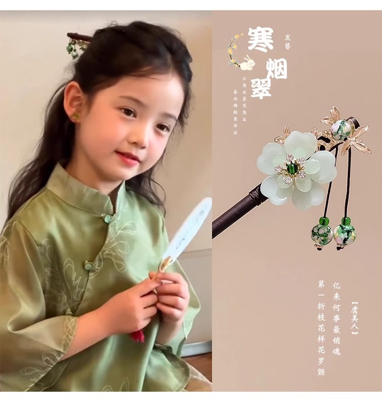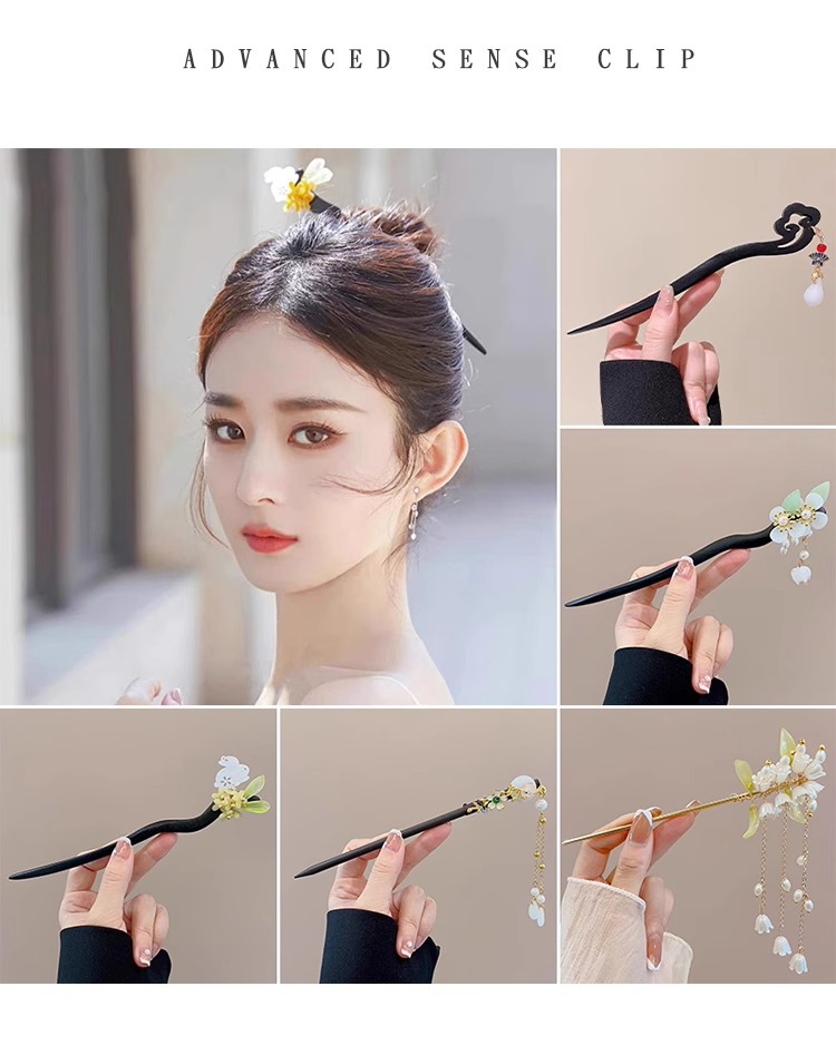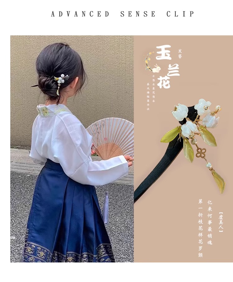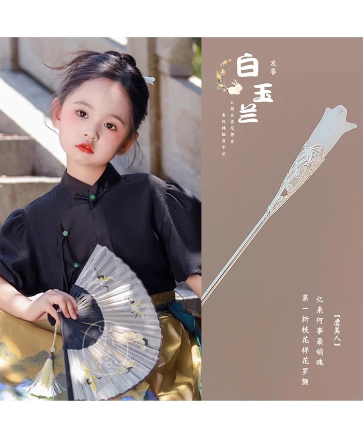 | Colores | Humo frío y verde.,Luna en el mundo.,Nueva borla de lirio de los valles.,Dos flores de ciruelo.,Las borlas de orquídeas.,Colgante de magnolia.,El lirio de los valles.,Lluvia brumosa.,Magnolia.,Magnolia.,El conejo de jade gana el título.,Las borlas de la luna.,Longkui borla de jade blanco.,Horquilla de nubes auspiciosas.,Luna de Xijiang.,Cuernos de alce.,Horquilla en forma de dragón.,Colgante de flor doble de jade blanco.,Nuevo estilo chino. |