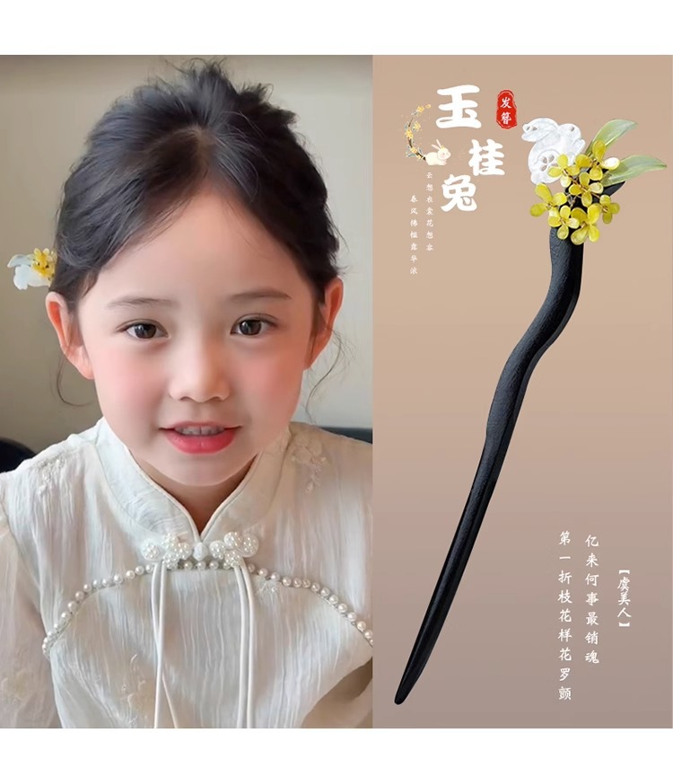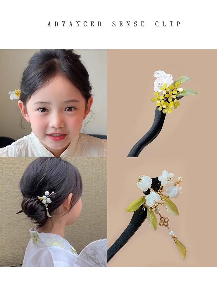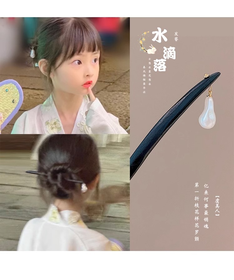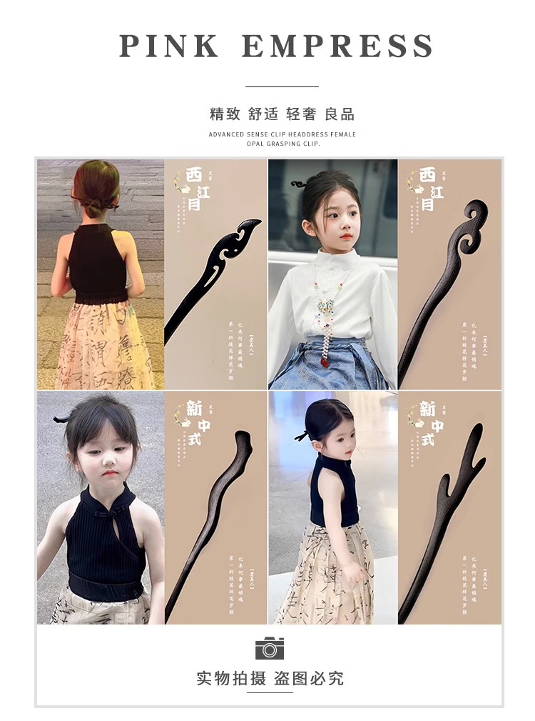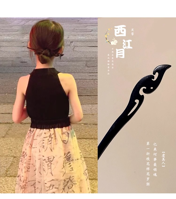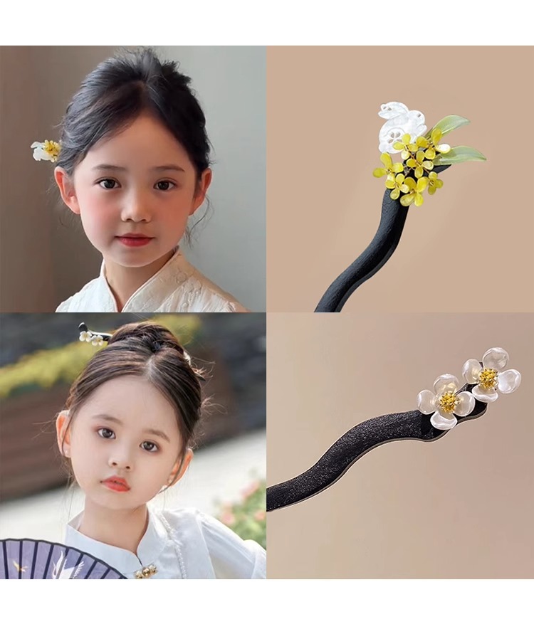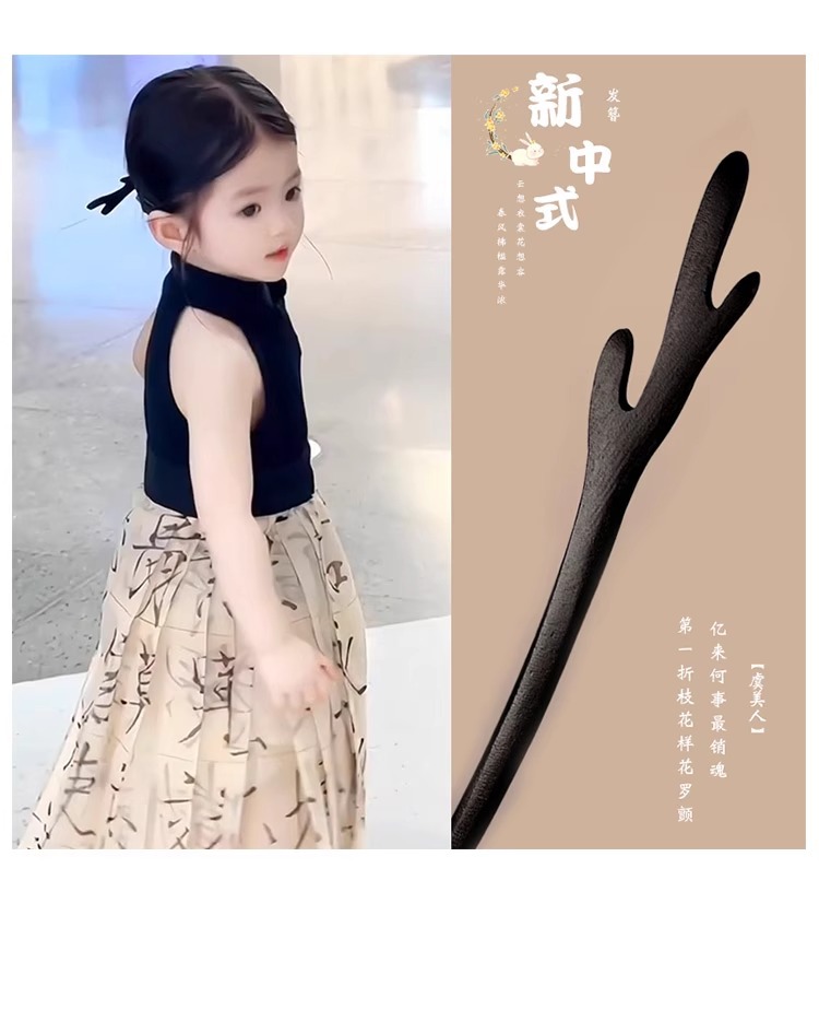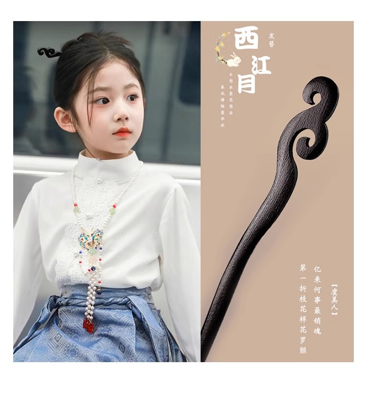 Horquilla de los niños estilo antiguo niñas accesorios para el pelo cara caballo falda Accesorios Estilo nacional horquilla simple ébano palillos Hanfu tocado