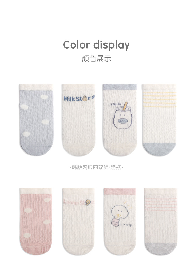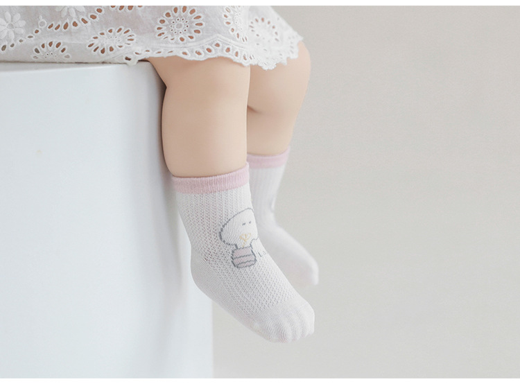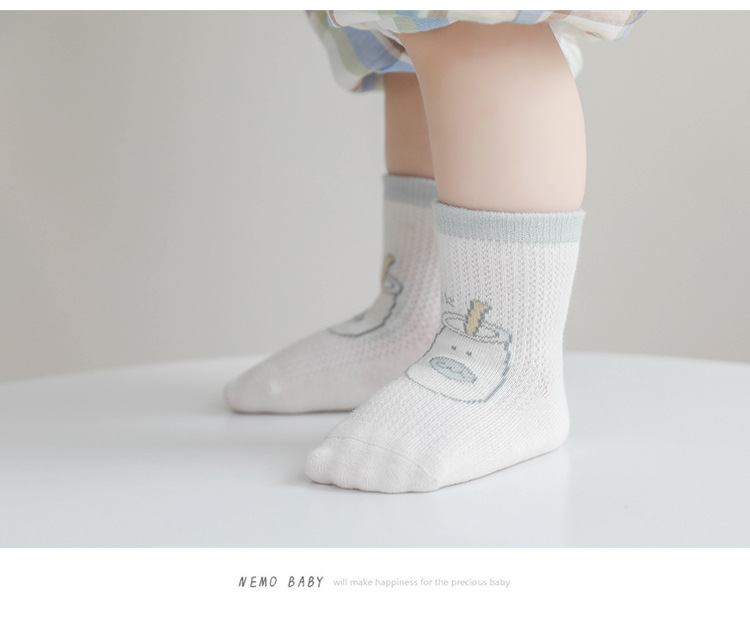 2023 Verano nuevos calcetines de bebé calcetines de algodón de malla ultrafina bebé recién nacido niños de dibujos animados lindos calcetines de media pantorrilla