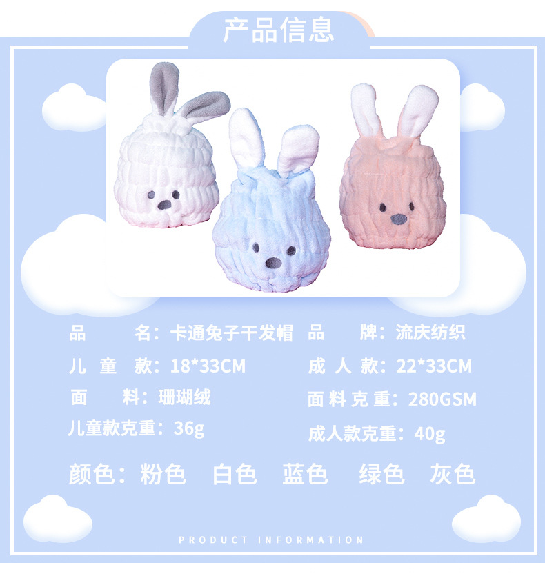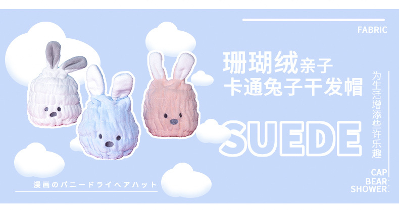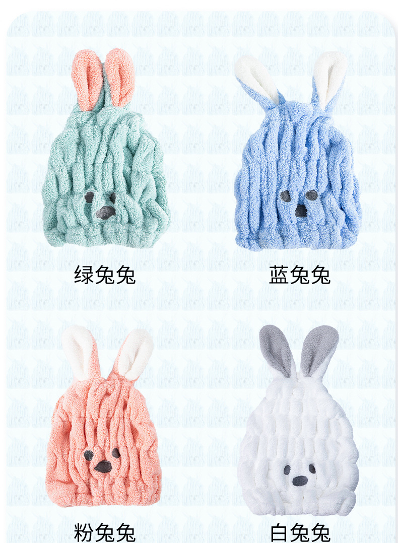 Tapa de secado de pelo lindo conejo de dibujos animados absorbente de secado rápido de coral polar ducha de pelo de los niños Toalla de pelo cerrado Toalla de secado de pelo