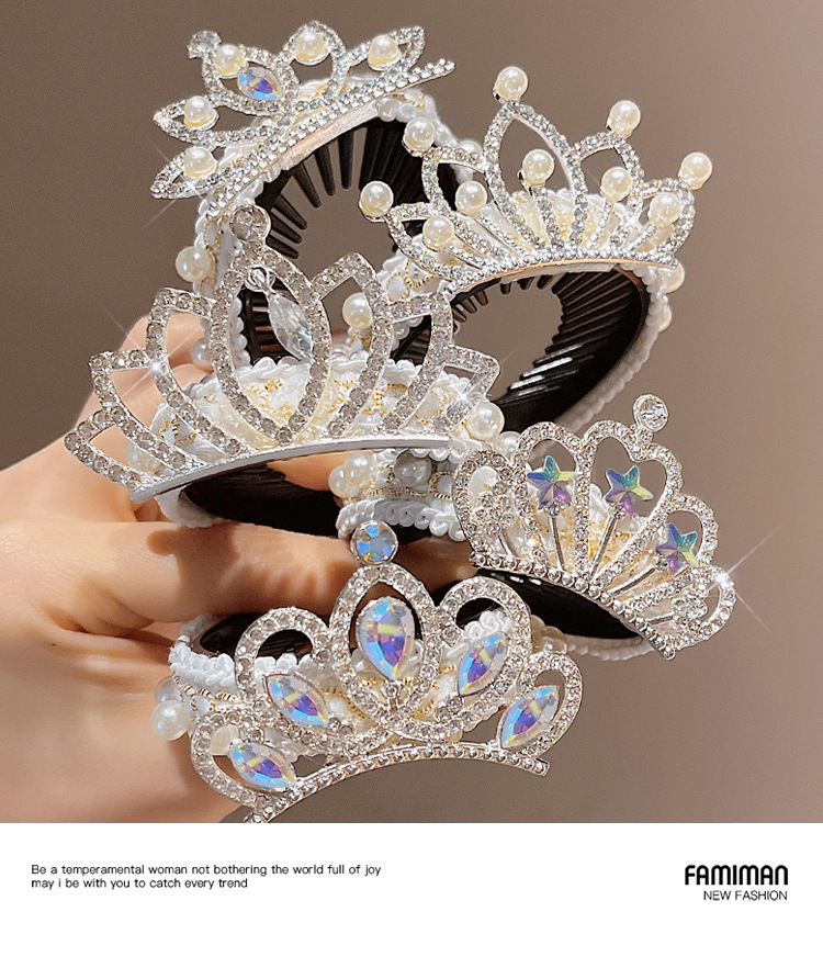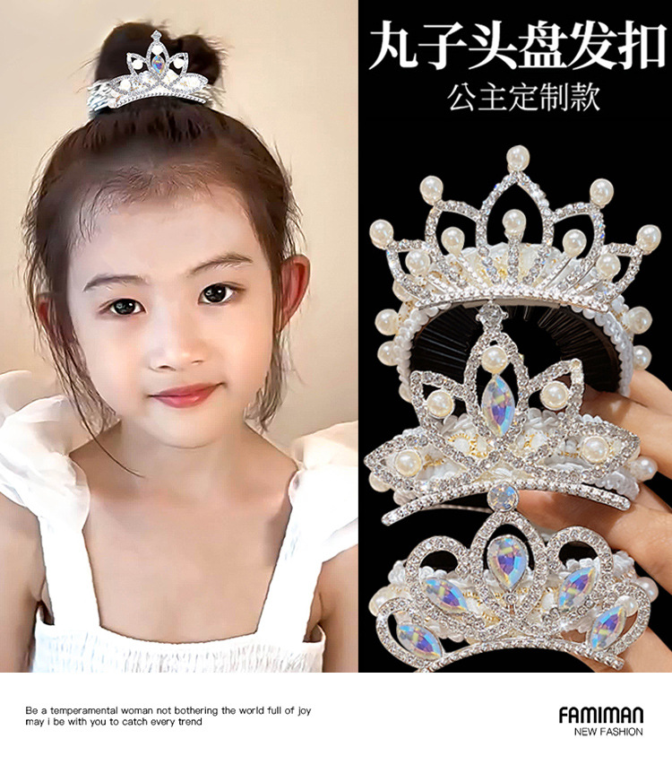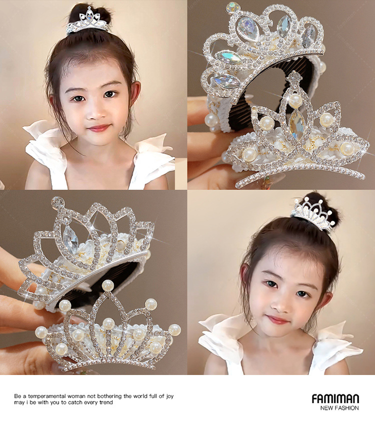 Niños perlas corona perlas perlas niñas bolas de cabello fijo artefacto princesa tocado de cabello para niñas joyas de cabello al por mayor