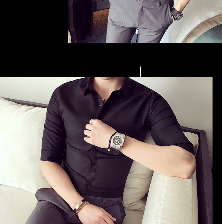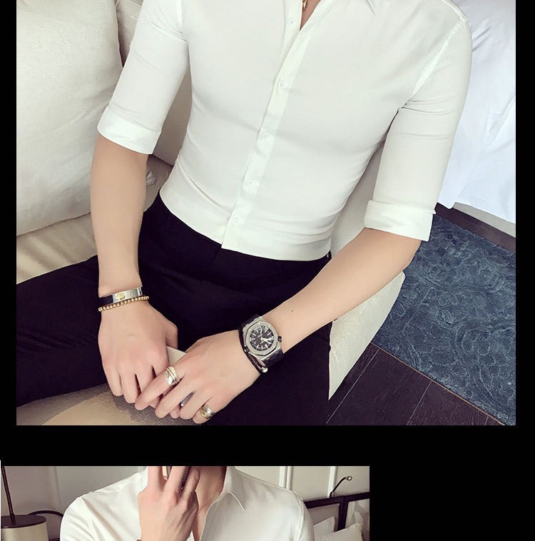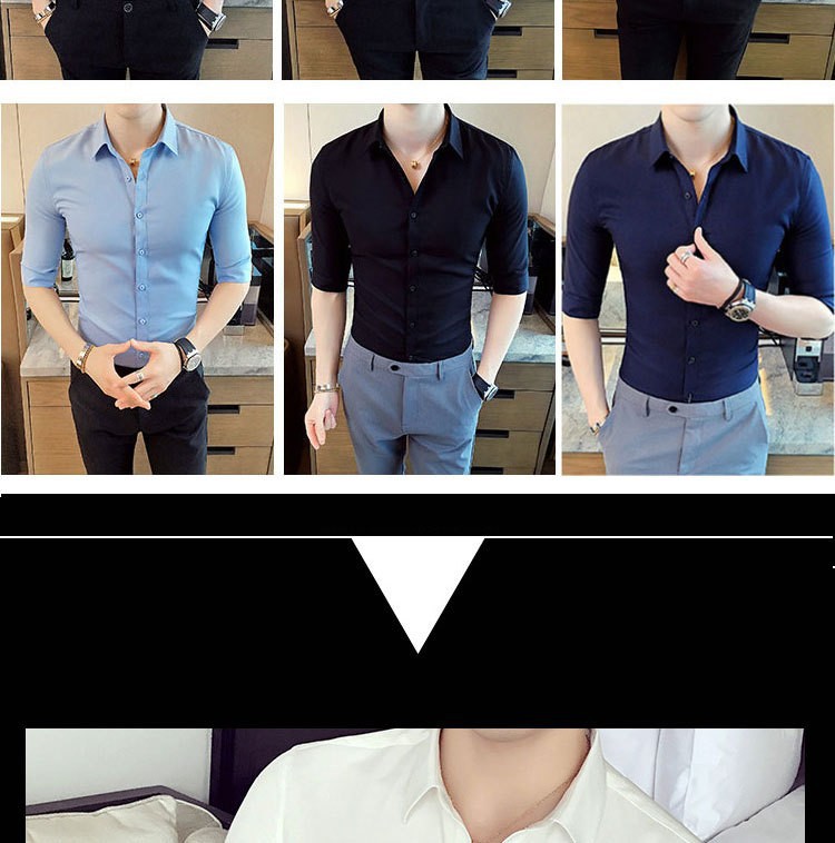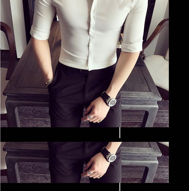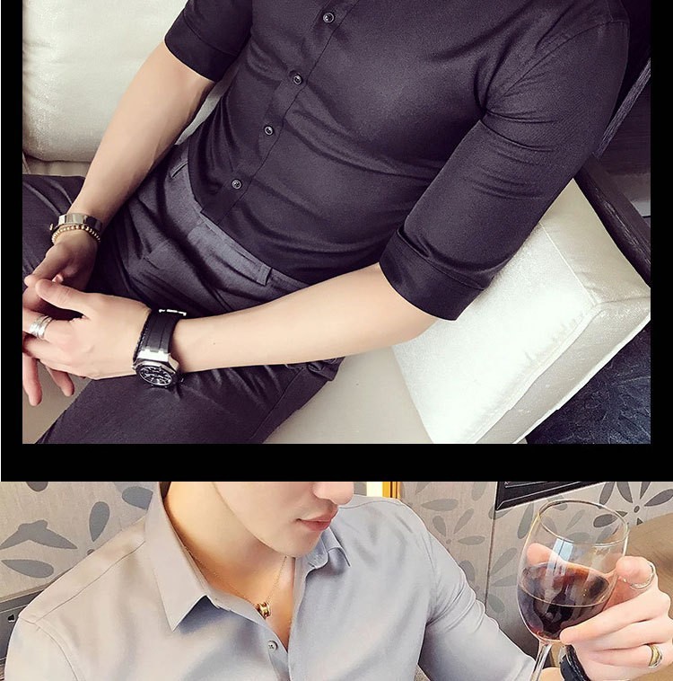 Casual de verano, moda coreana, estilo de moda, camisa de cuello vertical, ropa de hombre de alto nivel.