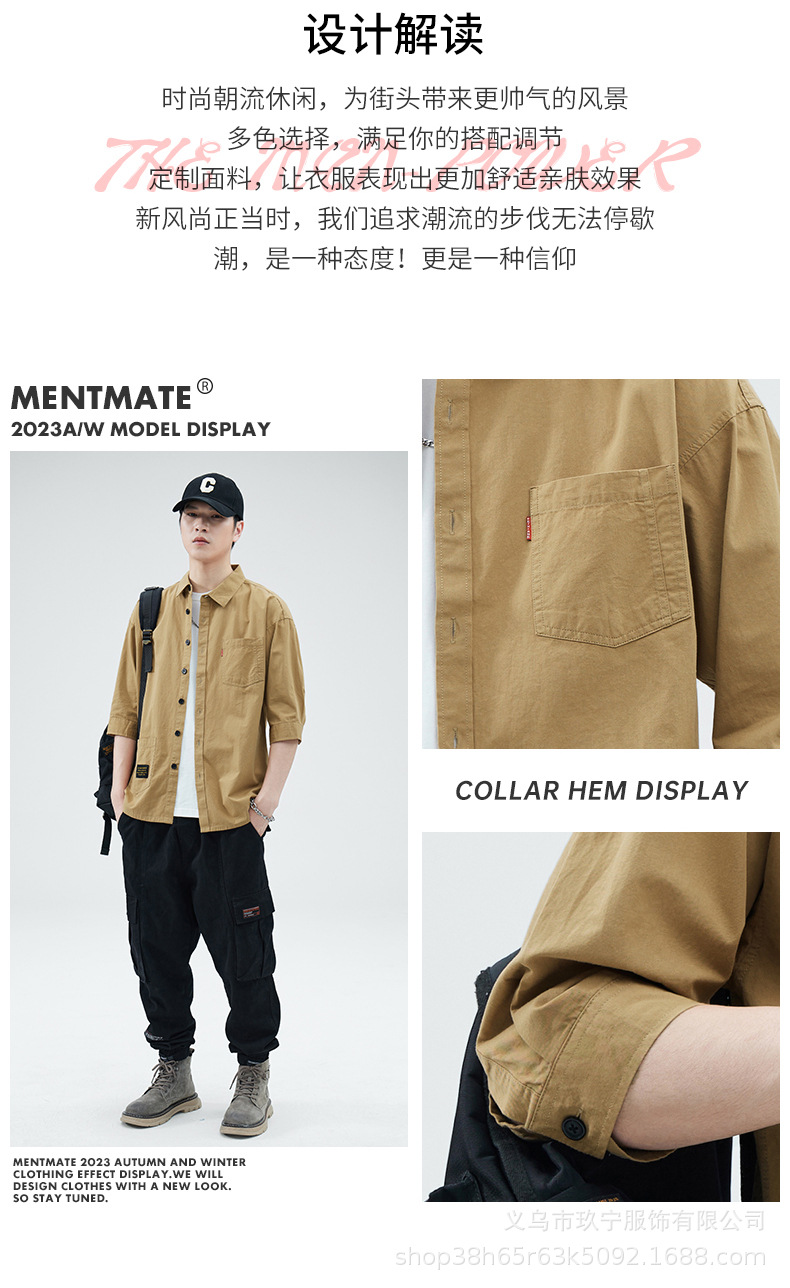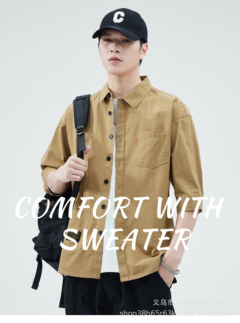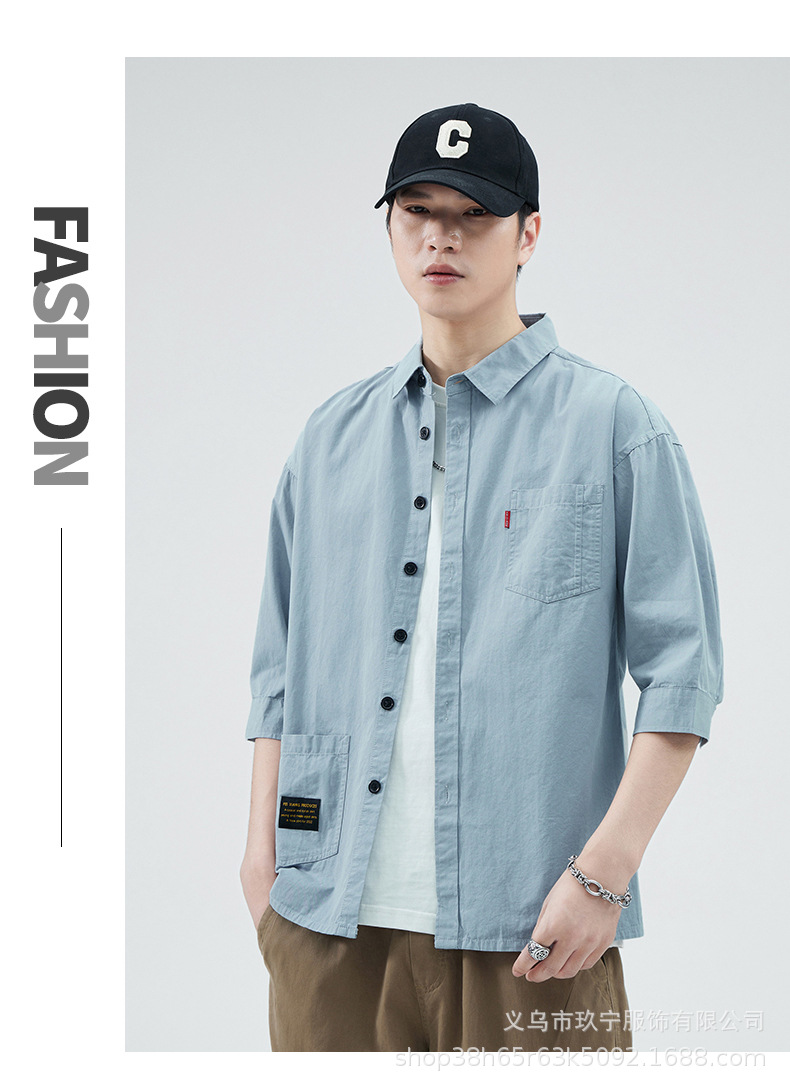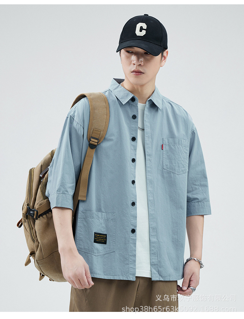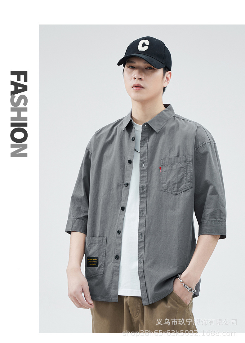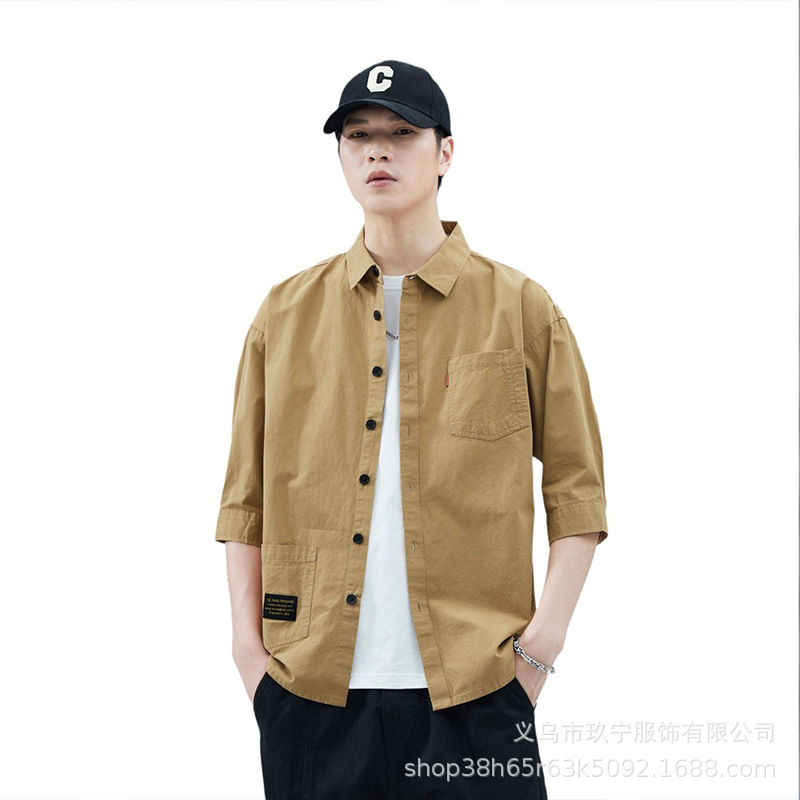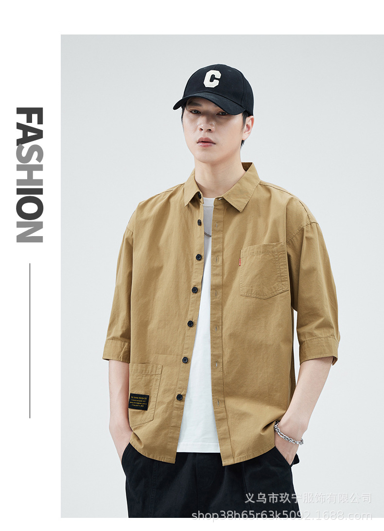 Hombre de alta calidad 100 algodón de manga corta verano delgado suelto siete puntos camisa casual camisa de trabajo chaqueta exterior