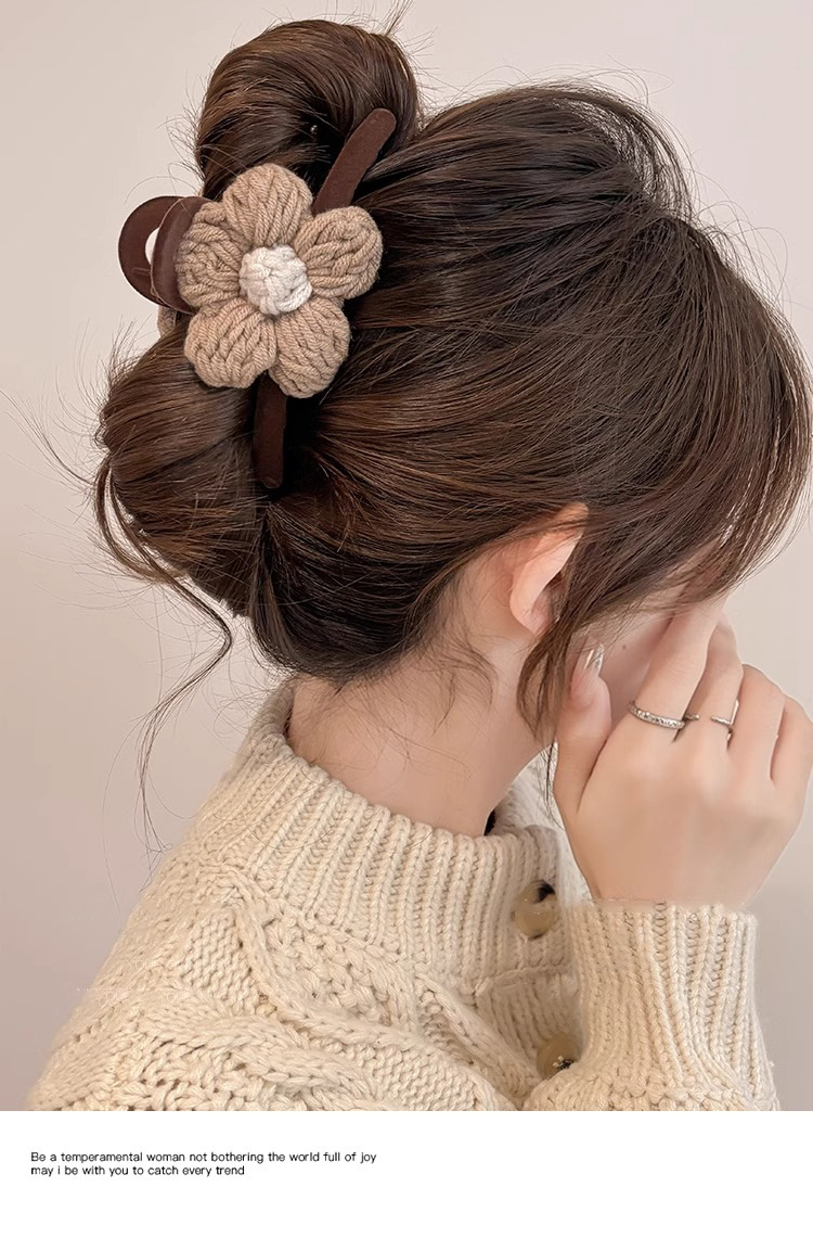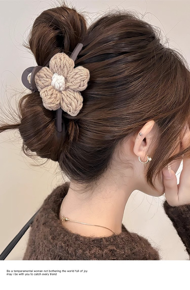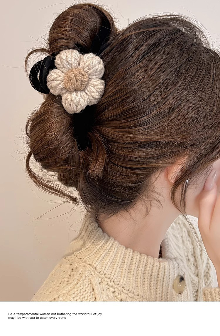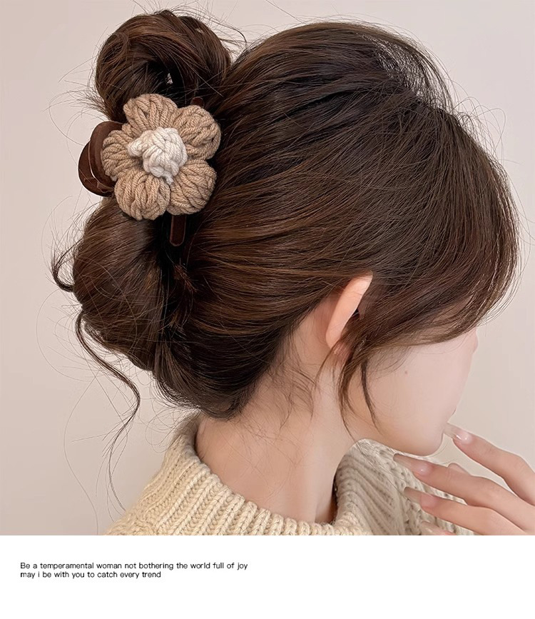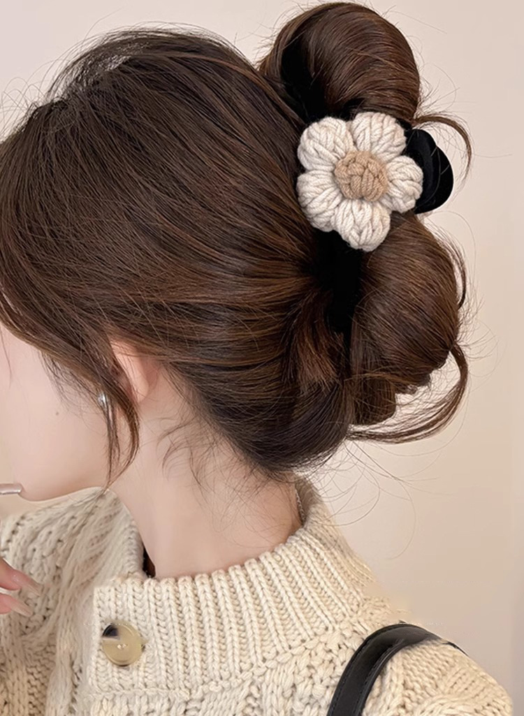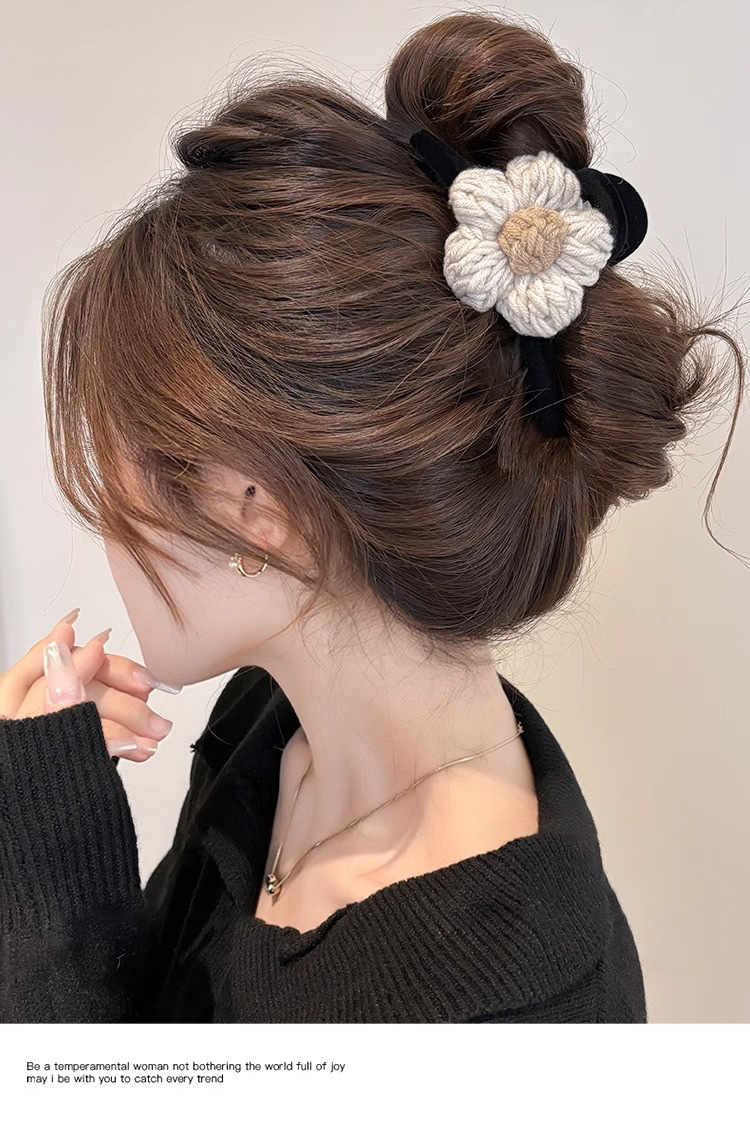 Clip de pelo de alta calidad con múltiples agarres femenino 2025 nuevo otoño e invierno clip de tiburón grande horquilla flor de punto horquilla tocado