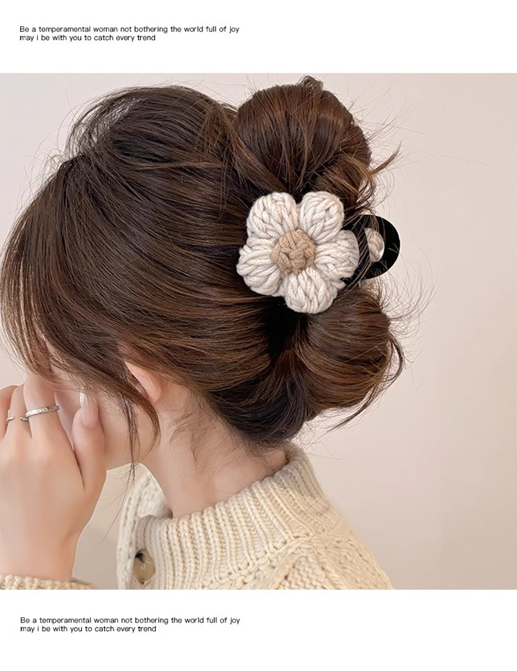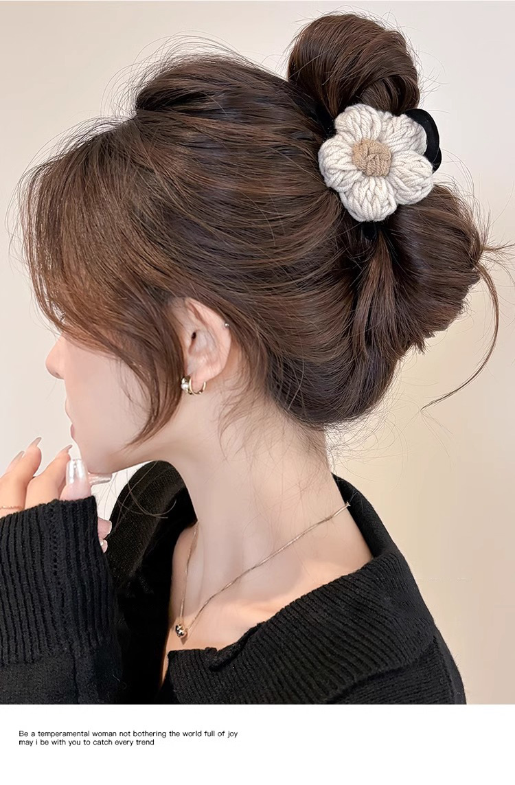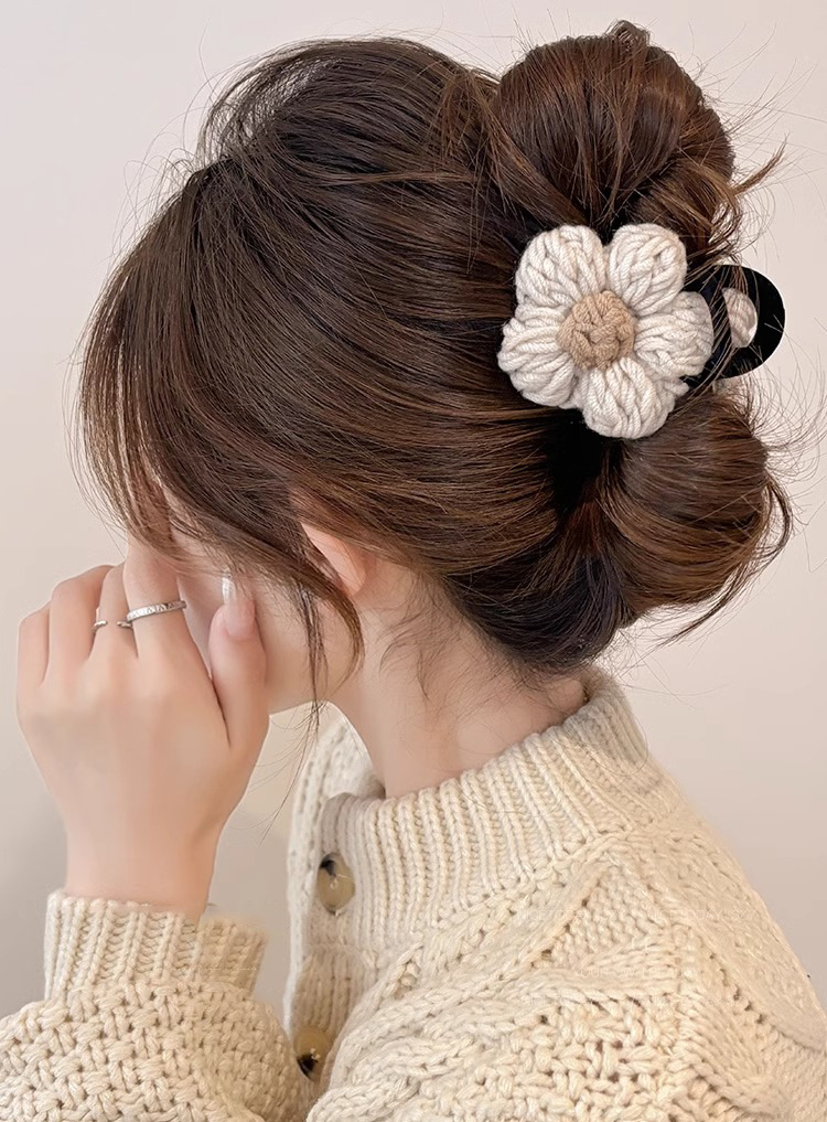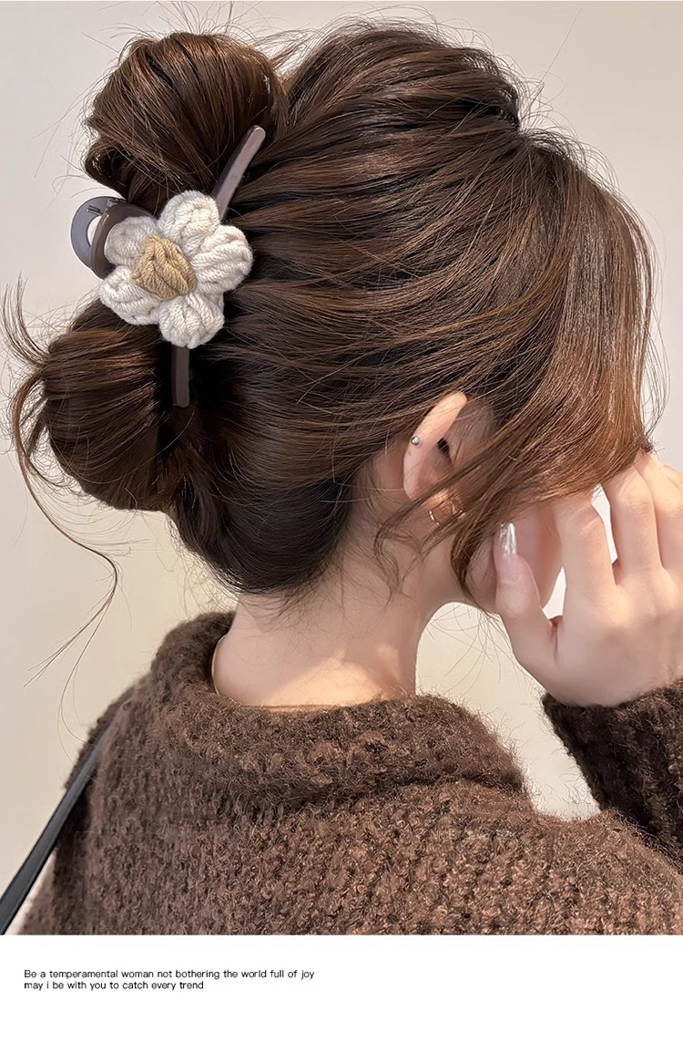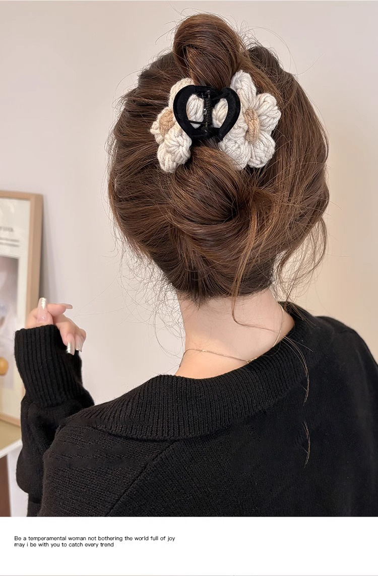 Clip de pelo de alta calidad con múltiples agarres femenino 2025 nuevo otoño e invierno clip de tiburón grande horquilla flor de punto horquilla tocado