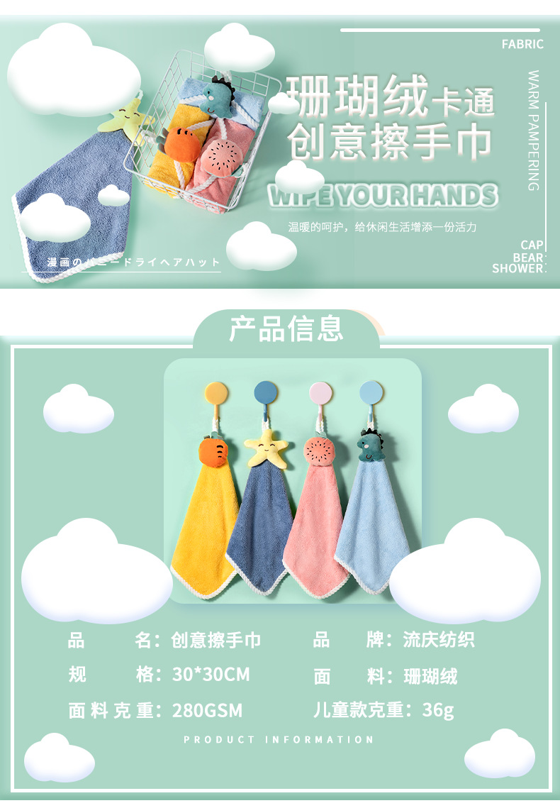 Toalla de mano coral polar creativo colgante toalla absorbente toalla de mano de los niños toalla de mano Linda toalla de mano al por mayor