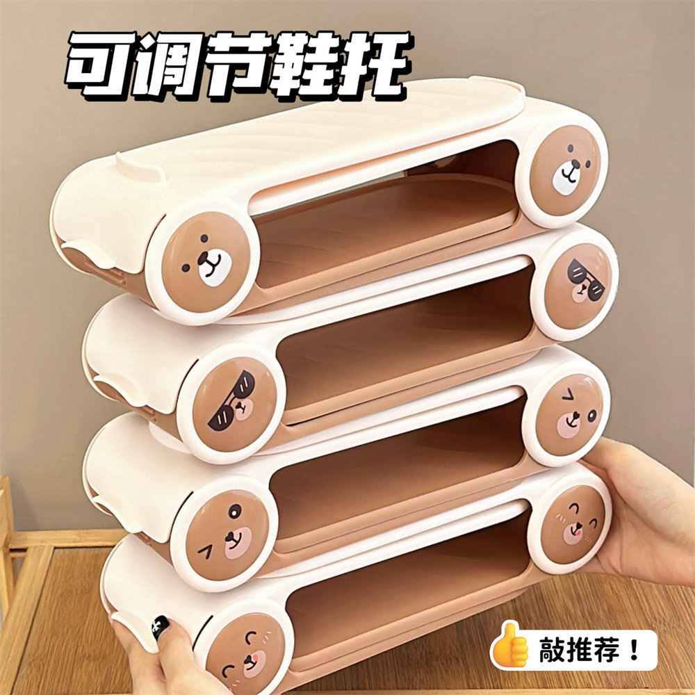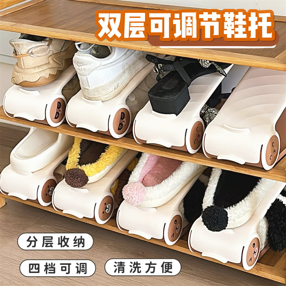 Nuevo estante de zapatos de almacenamiento simple, estante de zapatos plegable simple, estante de zapatos ajustable de plástico de doble capa integrado