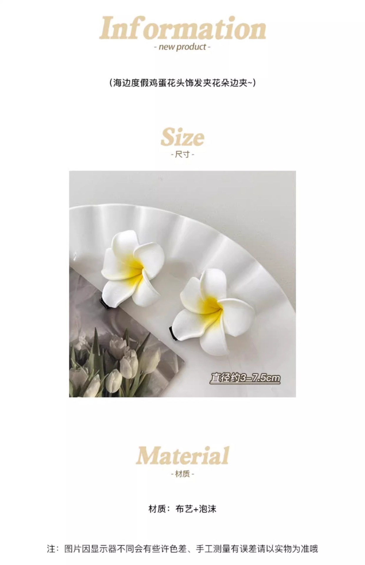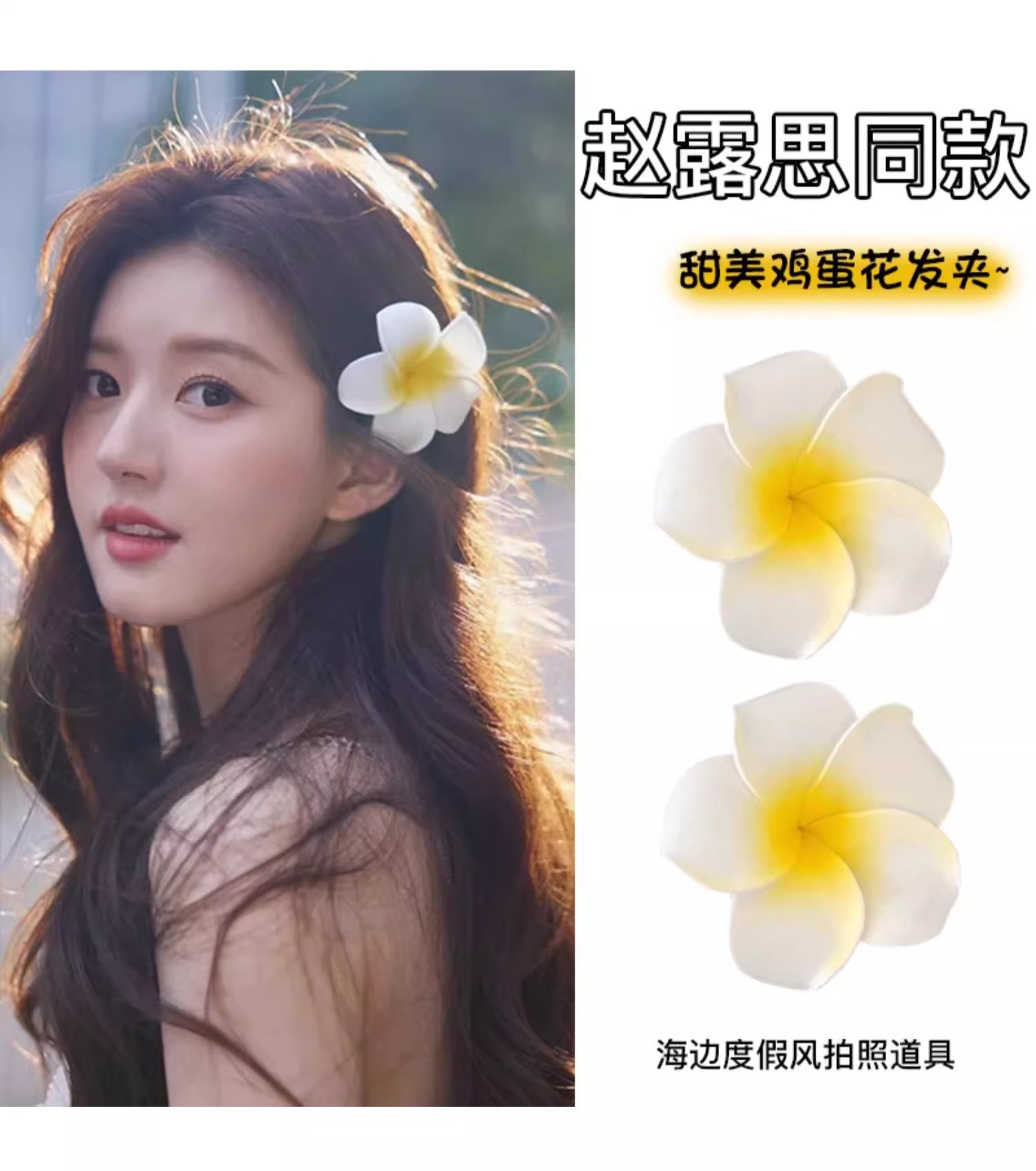 Dulces huevos flores clip de pelo para mujeres vacaciones al mar para tomar fotos props clip de pelo lateral frisa clip de pelo de boca de pato adornamiento