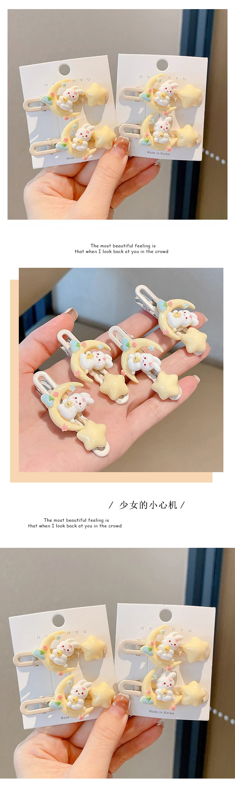 Lindo conejito estrella horquilla femenina dopamina clip lateral de dibujos animados flequillo lateral frente clip de pico de pato horquilla