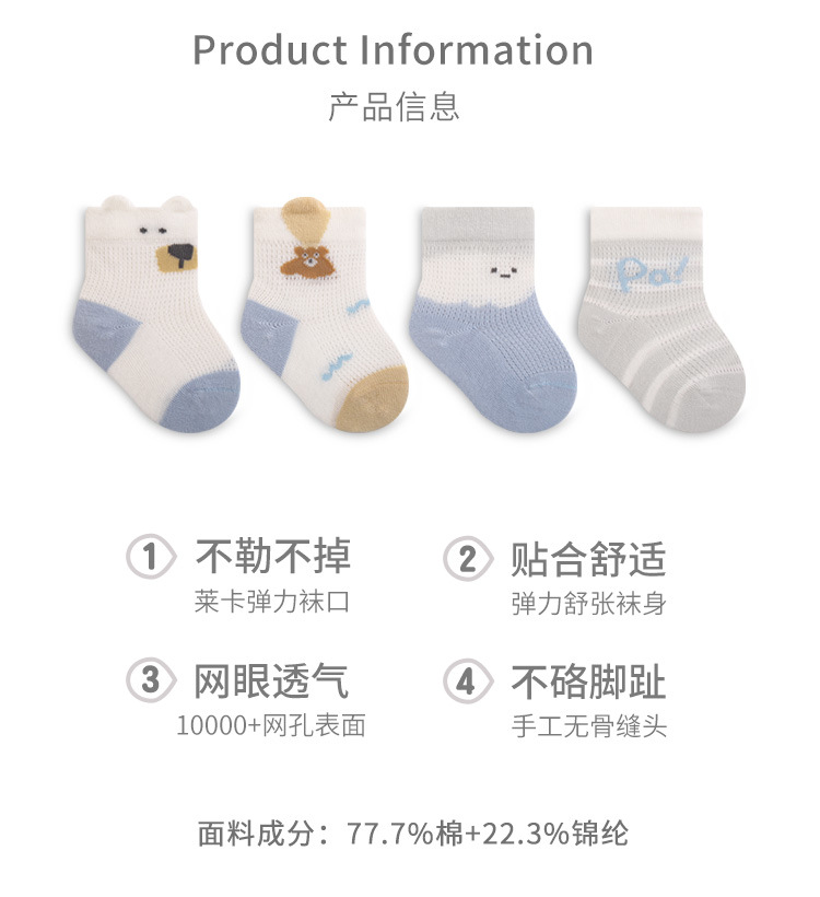 Calcetines de bebé recién nacidos calcetines de bebé transpirables de malla delgada de verano lindo dibujos animados boca suelta sin hueso calcetines de algodón a media pierna