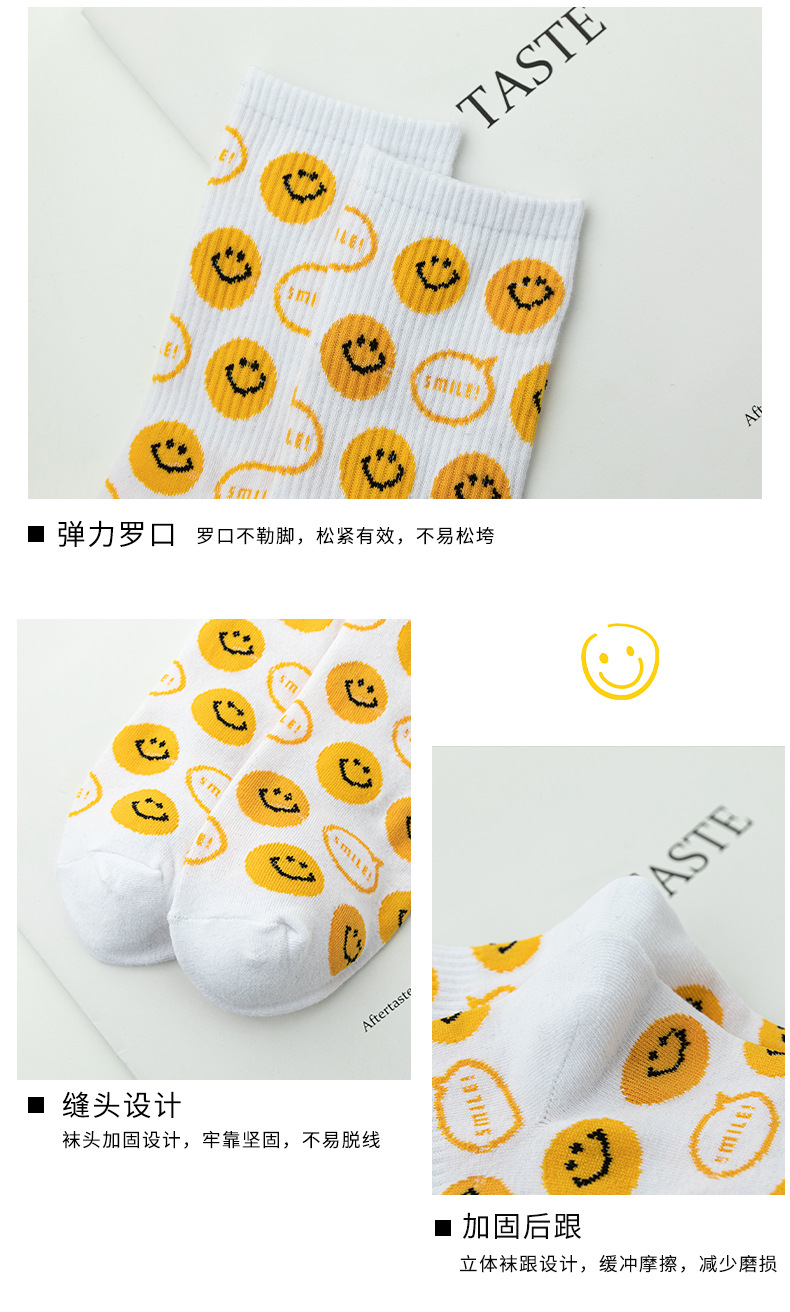 Calcetines de algodón de color sólido media pantorrilla de mujer en blanco y negro cara sonriente verano calcetines de algodón de mujer ins moda Zhuji calcetines al por mayor