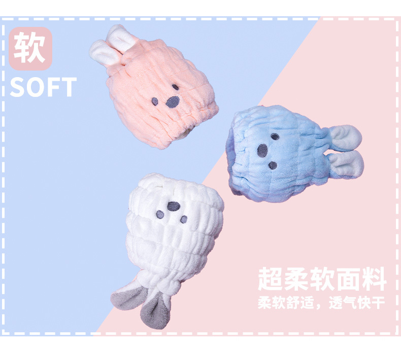 Gorro de secado de cabello lindo conejo de dibujos animados gorro de ducha absorbente de secado rápido coral vellón toalla de pelo para niños toalla de secado de pelo de punta cerrada