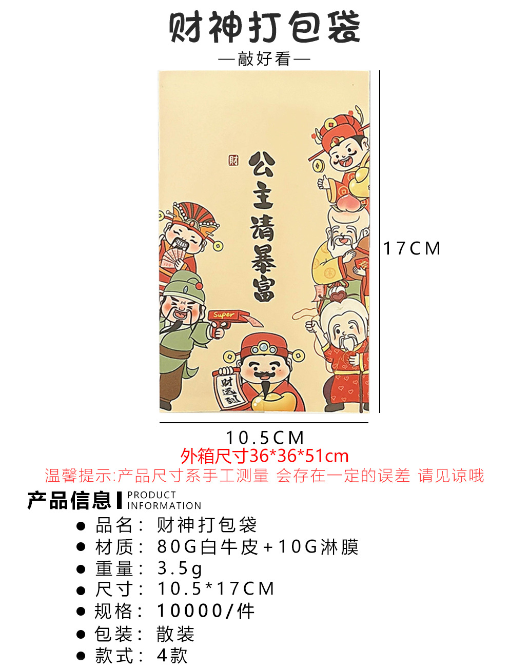 Tengyi nombre conjunto autorizado Dios DE LA Riqueza bolsa de embalaje de alto aspecto para hornear bolsa de almacenamiento de joyas bolsa de papel de embalaje de niña al por mayor
