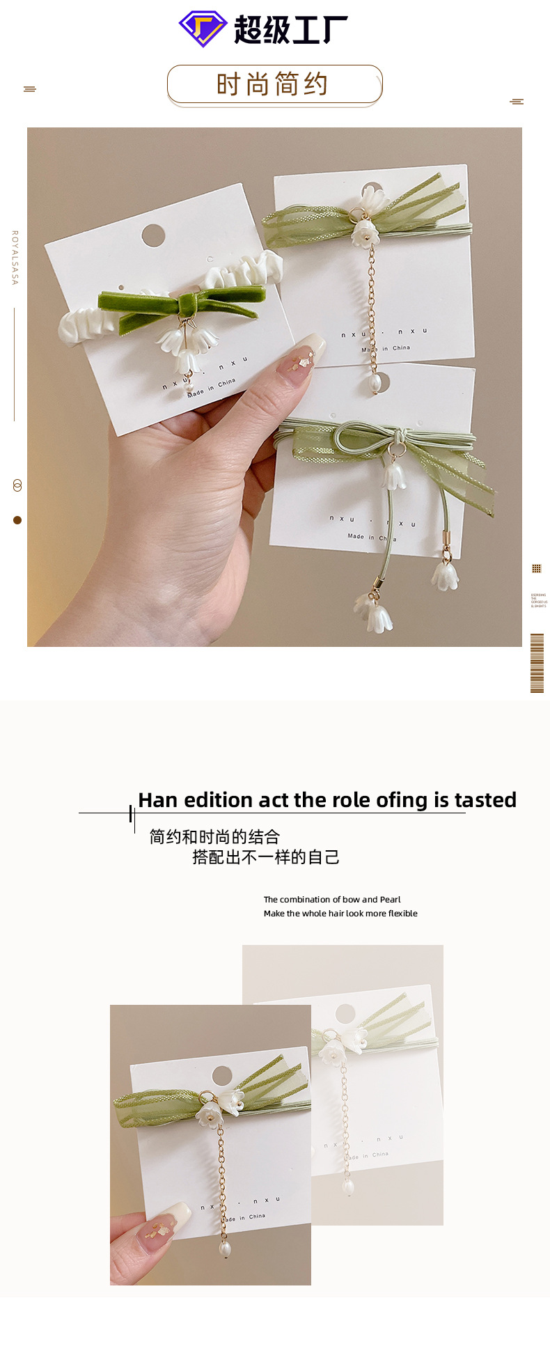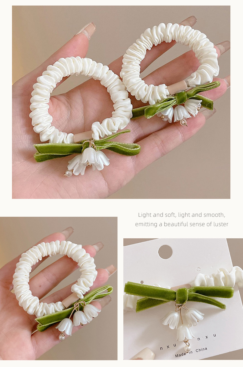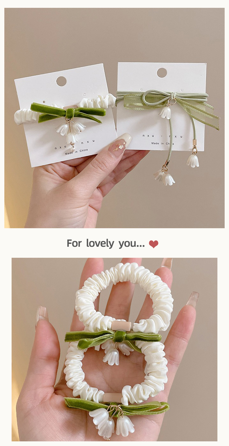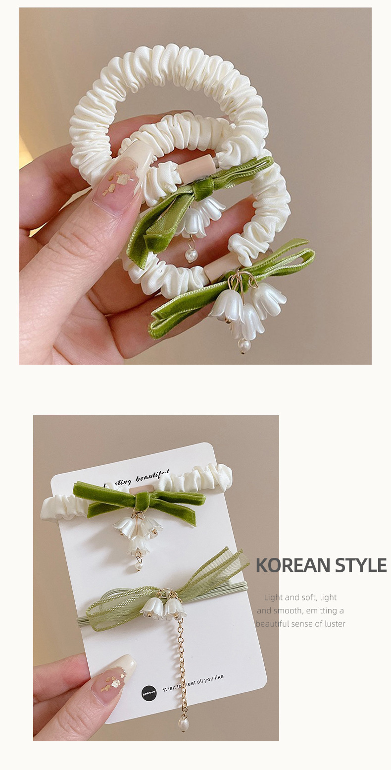 Cuerda para el cabello de lirio de los valles verde súper hada verano 2025 nueva banda de goma para el cabello con lazo dulce cuerda para el cabello de las niñas