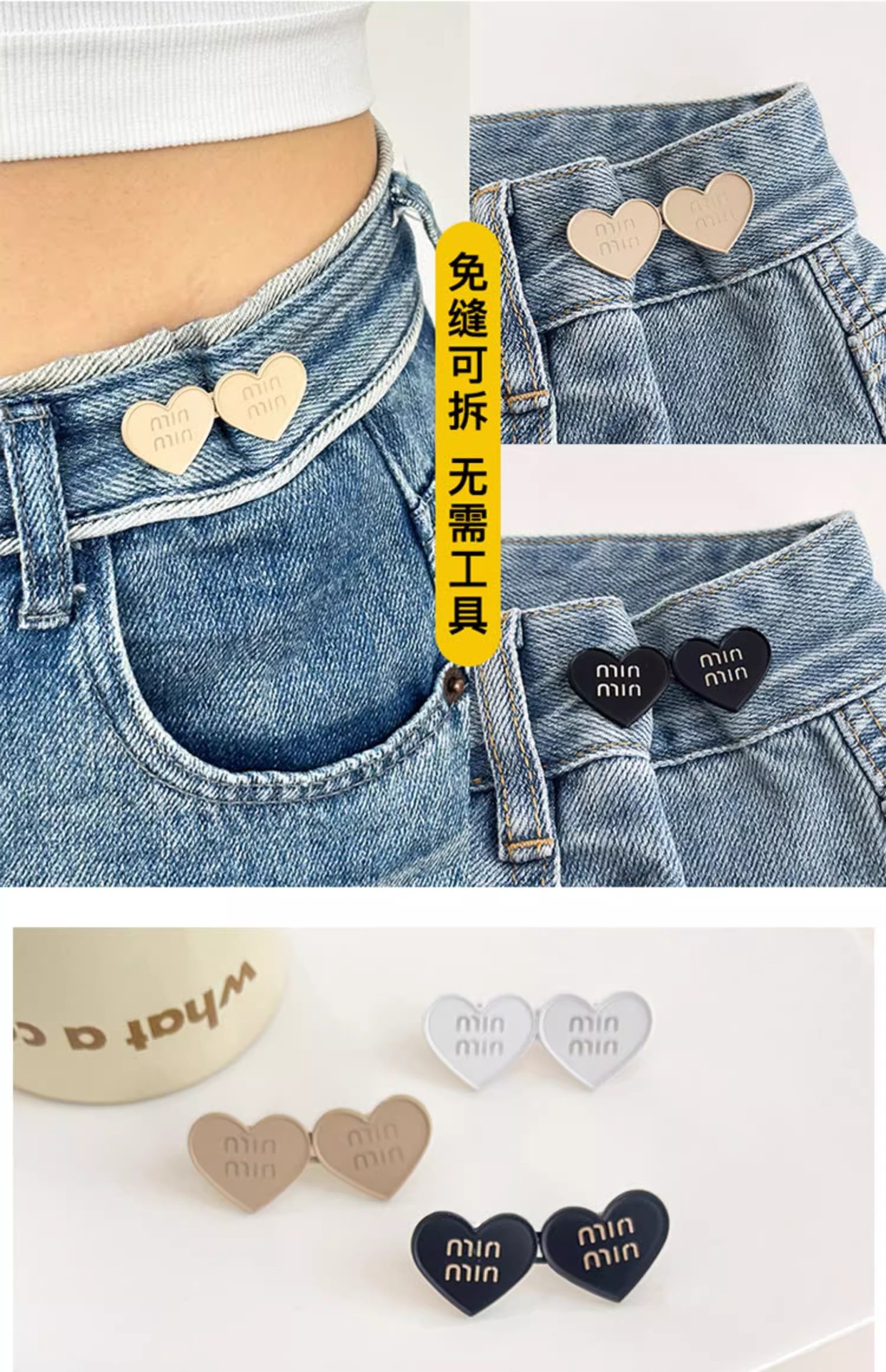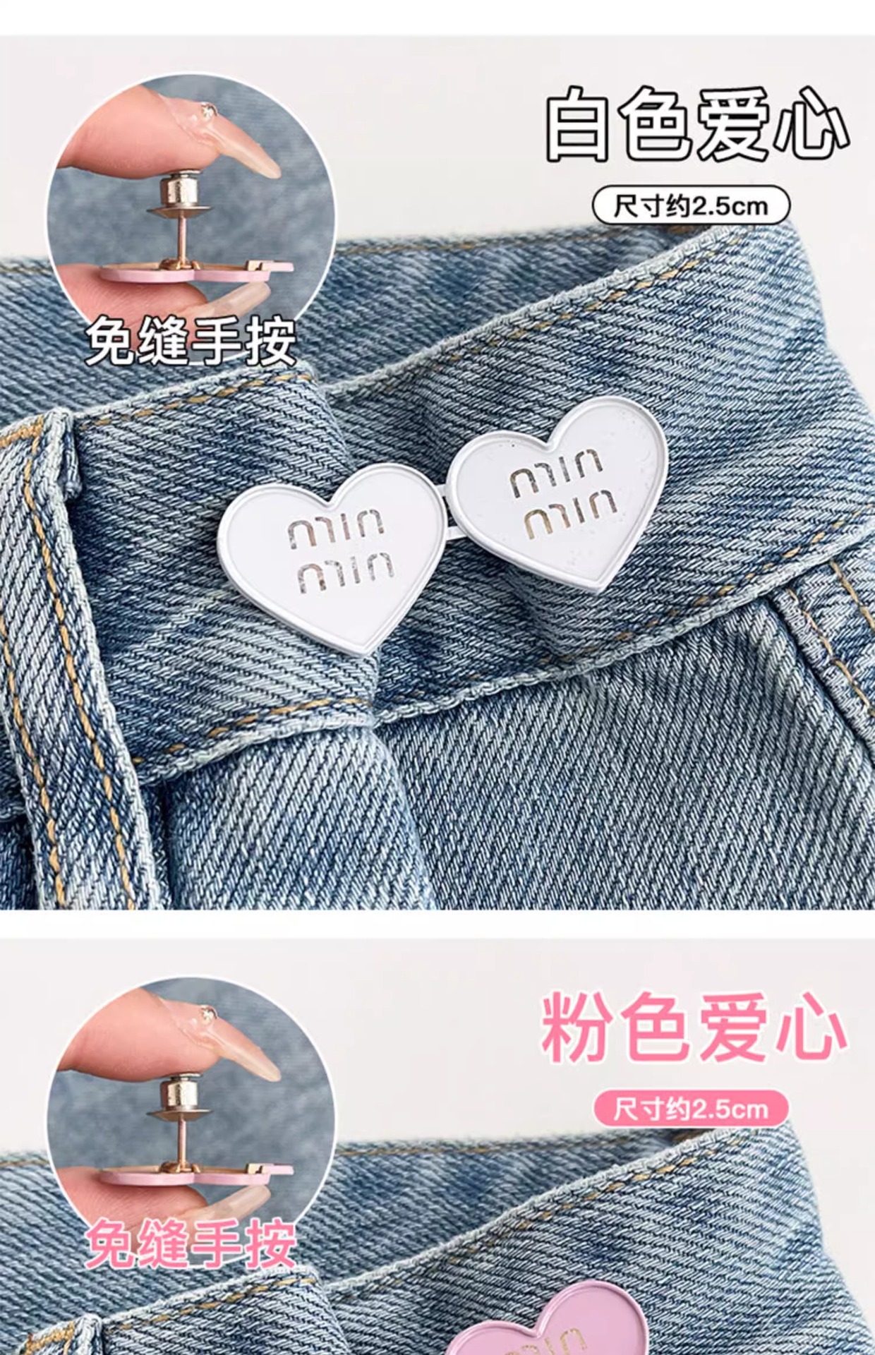 Pantalones de amor cintura apretada cintura botón sin costuras cintura artefacto botón pantalones pequeños jeans broche de ajuste ajustable