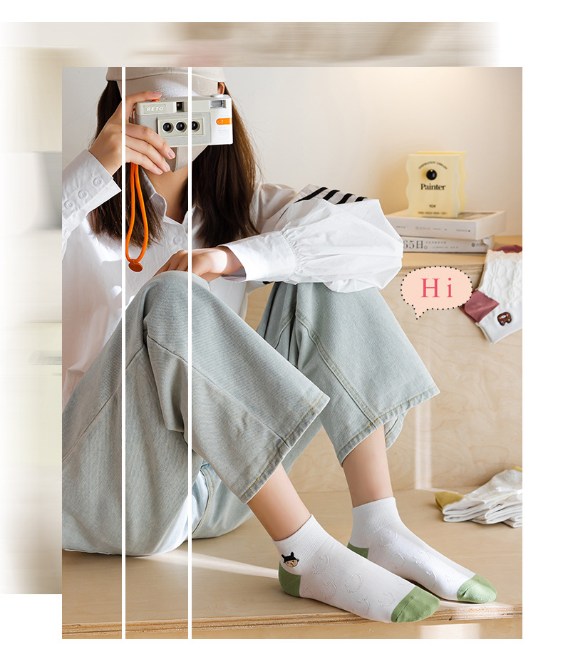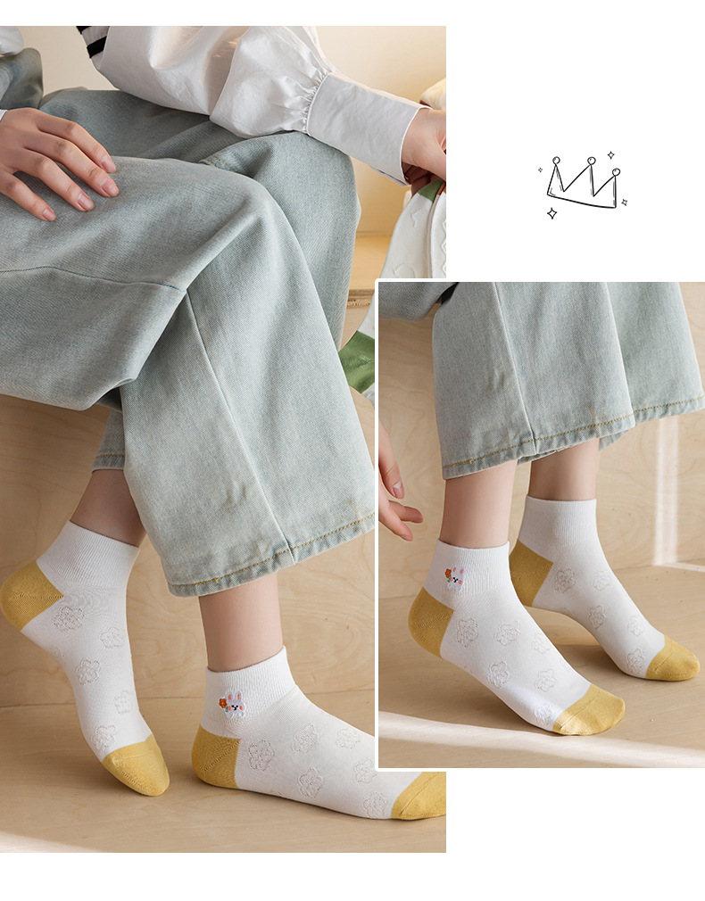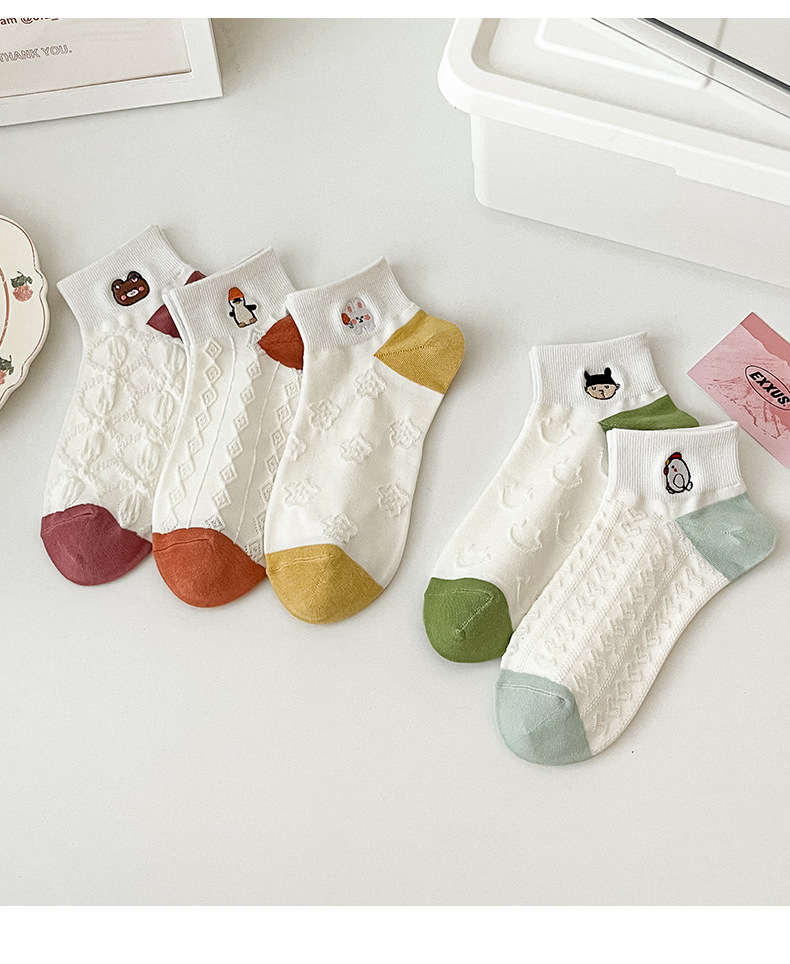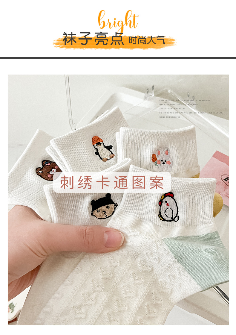Calcetines mujer color sólido algodón primavera y verano calcetines de barco finos tubo corto bordado animales pequeños calcetines Zhuji al por mayor