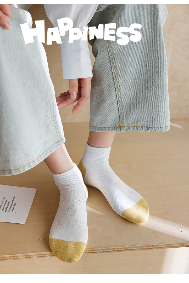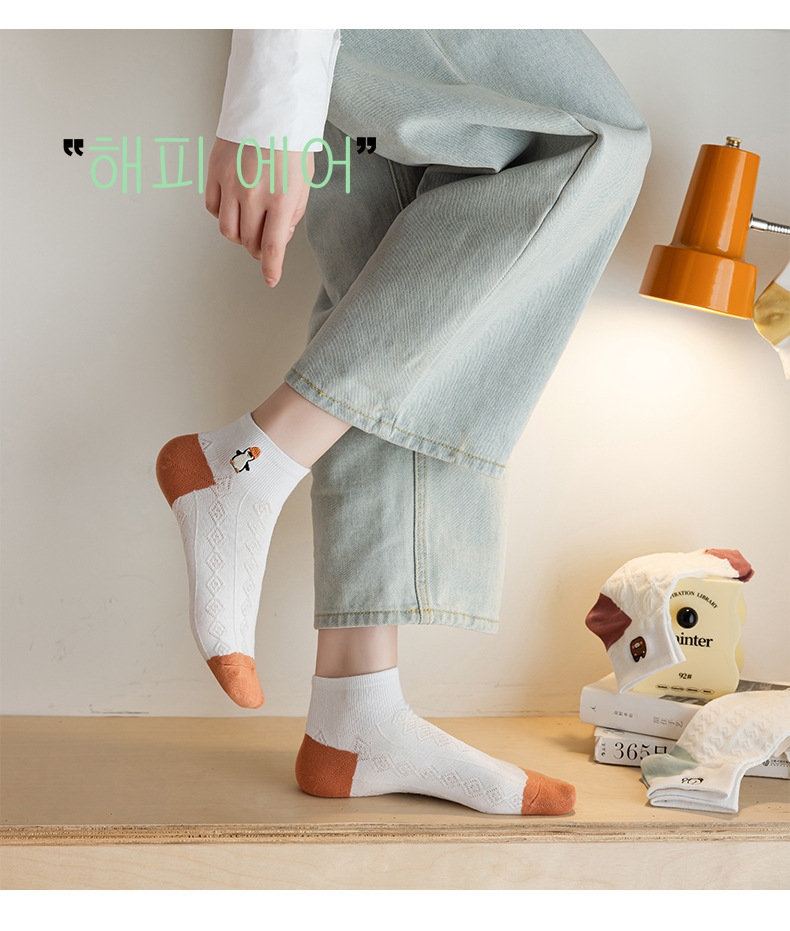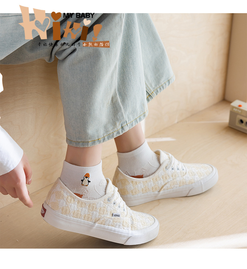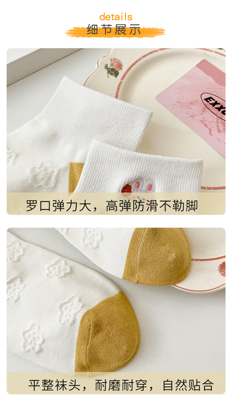 Calcetines mujer color sólido algodón primavera y verano calcetines de barco finos tubo corto bordado animales pequeños calcetines Zhuji al por mayor
