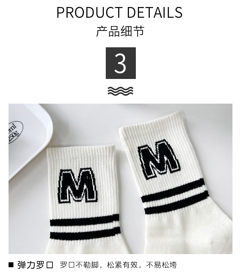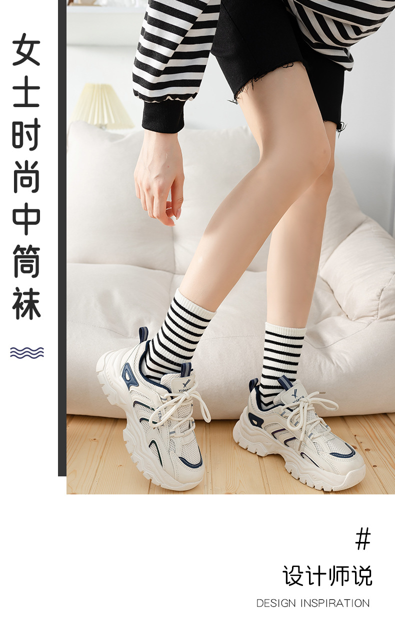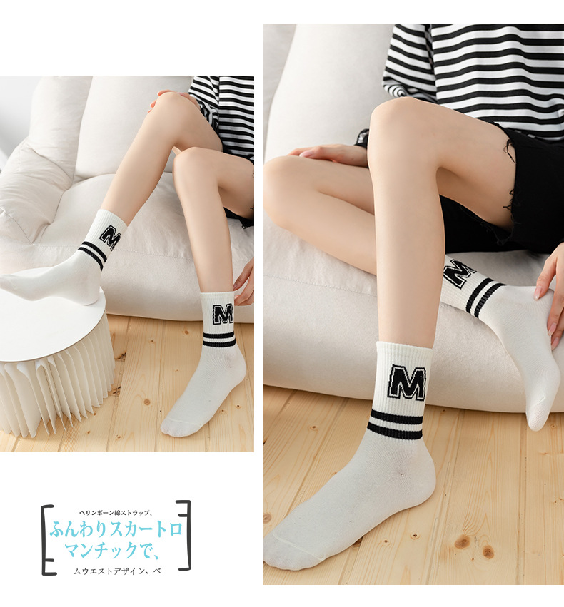Calcetines de primavera, Otoño e Invierno calcetines de mujer a media pierna de mujer de color sólido calcetines de algodón a rayas en blanco y negro calcetines de algodón casuales deportivos