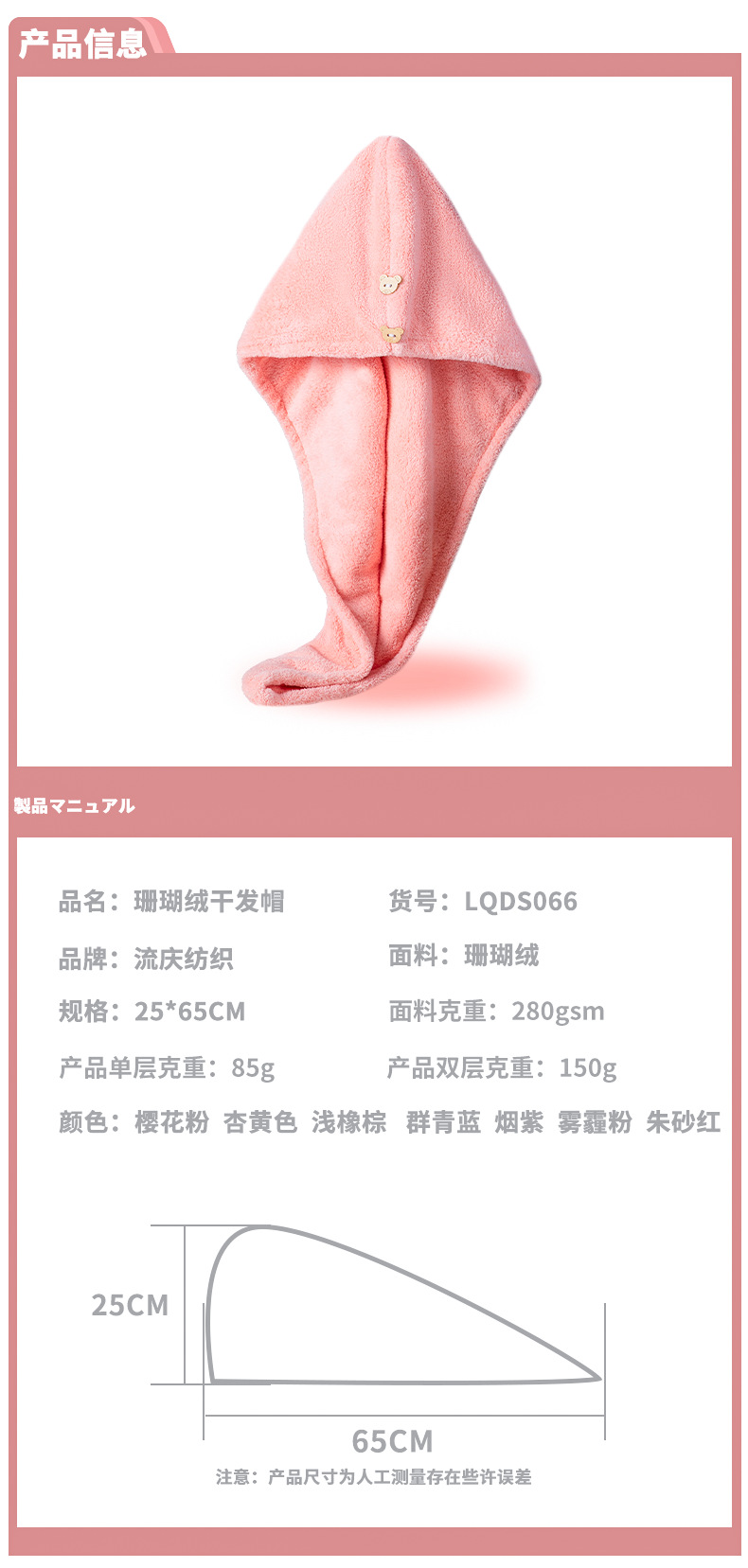 Macaron color coral vellón pelo secado sombrero mujer de doble capa fuerte absorbente engrosada hogar ducha gorro pañuelo toalla al por mayor