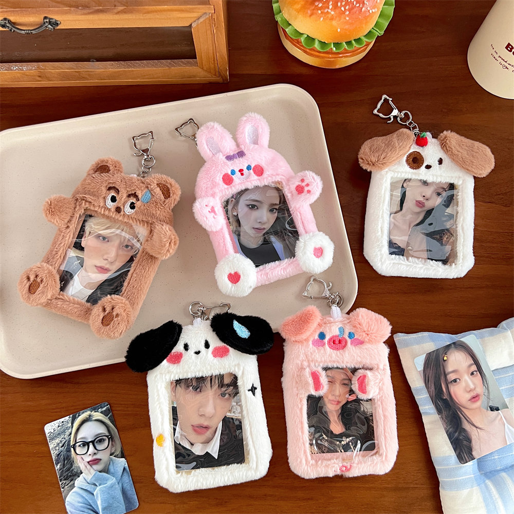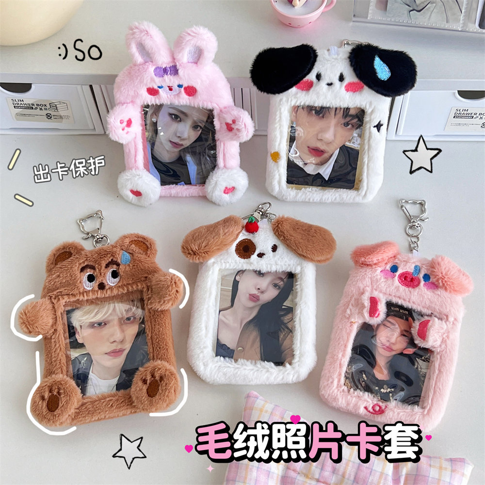Lindo felpa animal titular de la tarjeta ins chica persiguiendo estrella amor frijol foto almacenamiento conjunto estudiante campus tarjeta bolsa decorativa