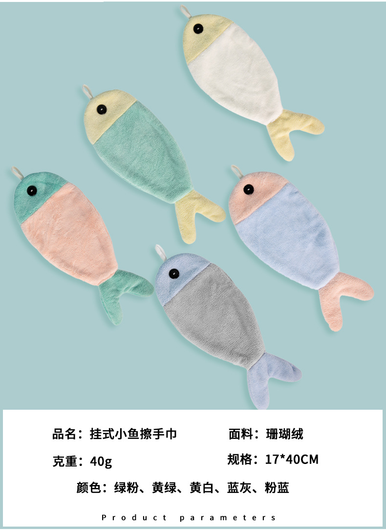 Toalla de mano creativa de lana de coral colgando toalla absorbente de pescado engrosada toalla de mano para niños toalla colgante linda de secado rápido