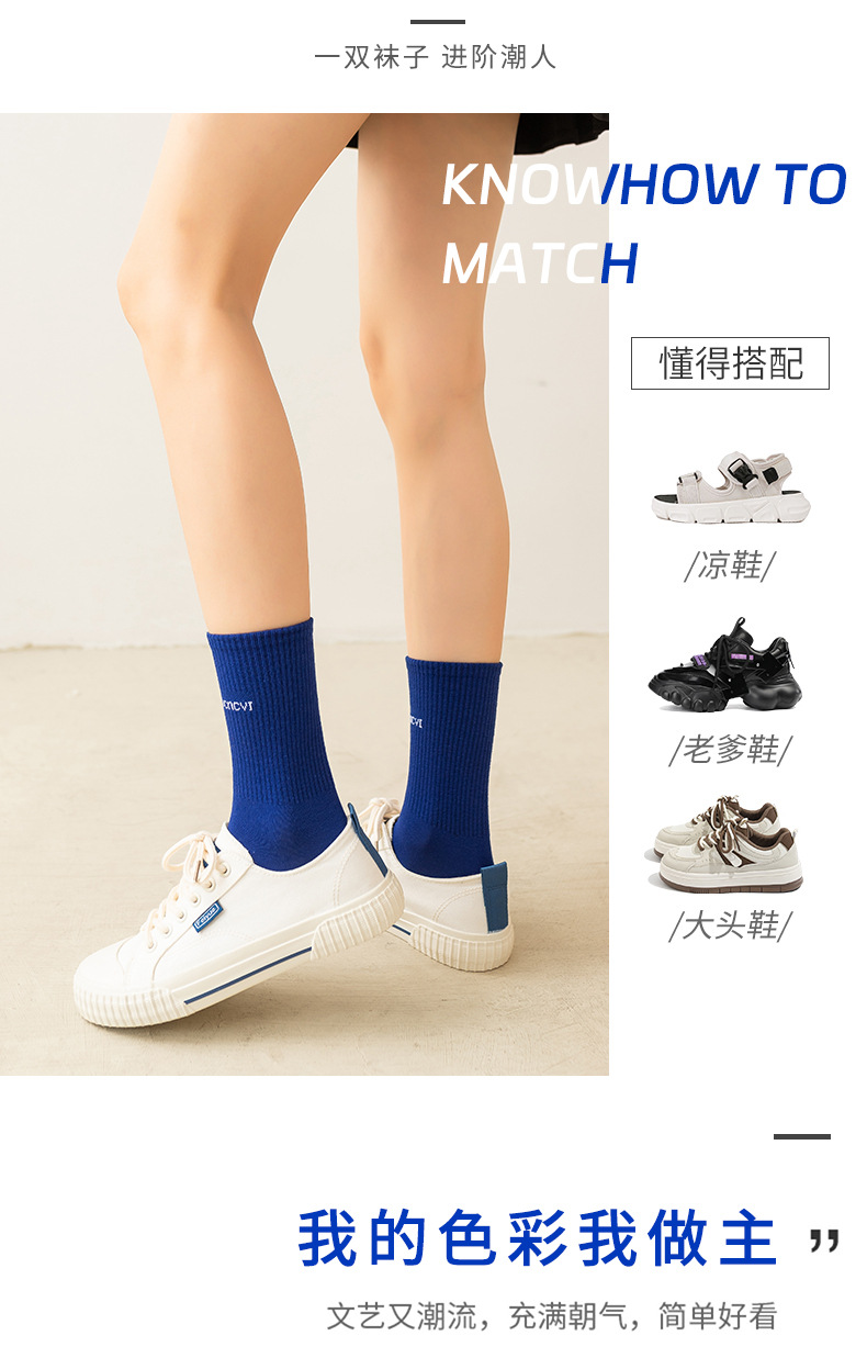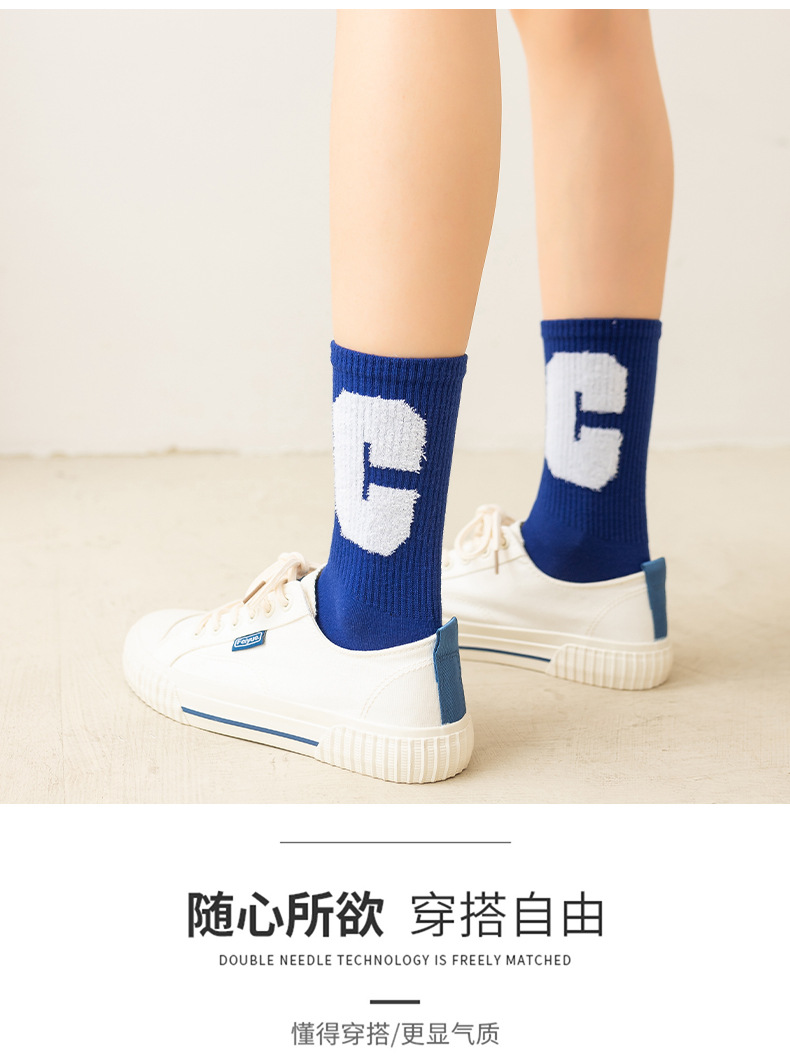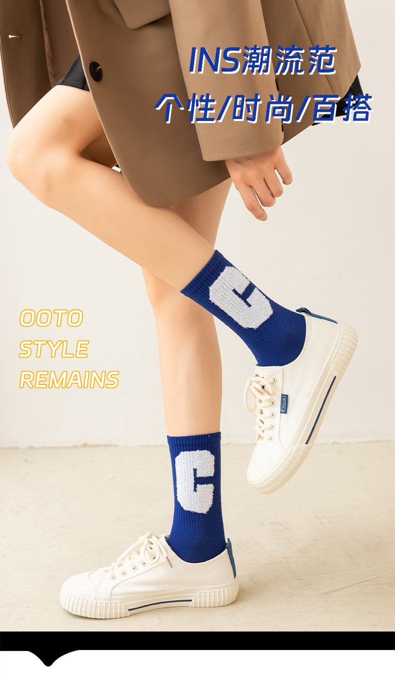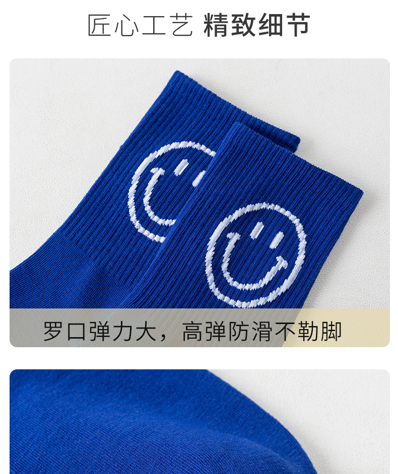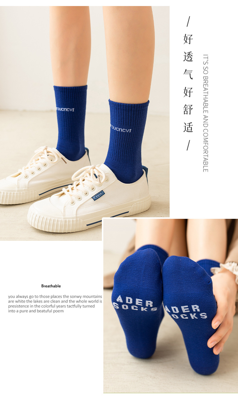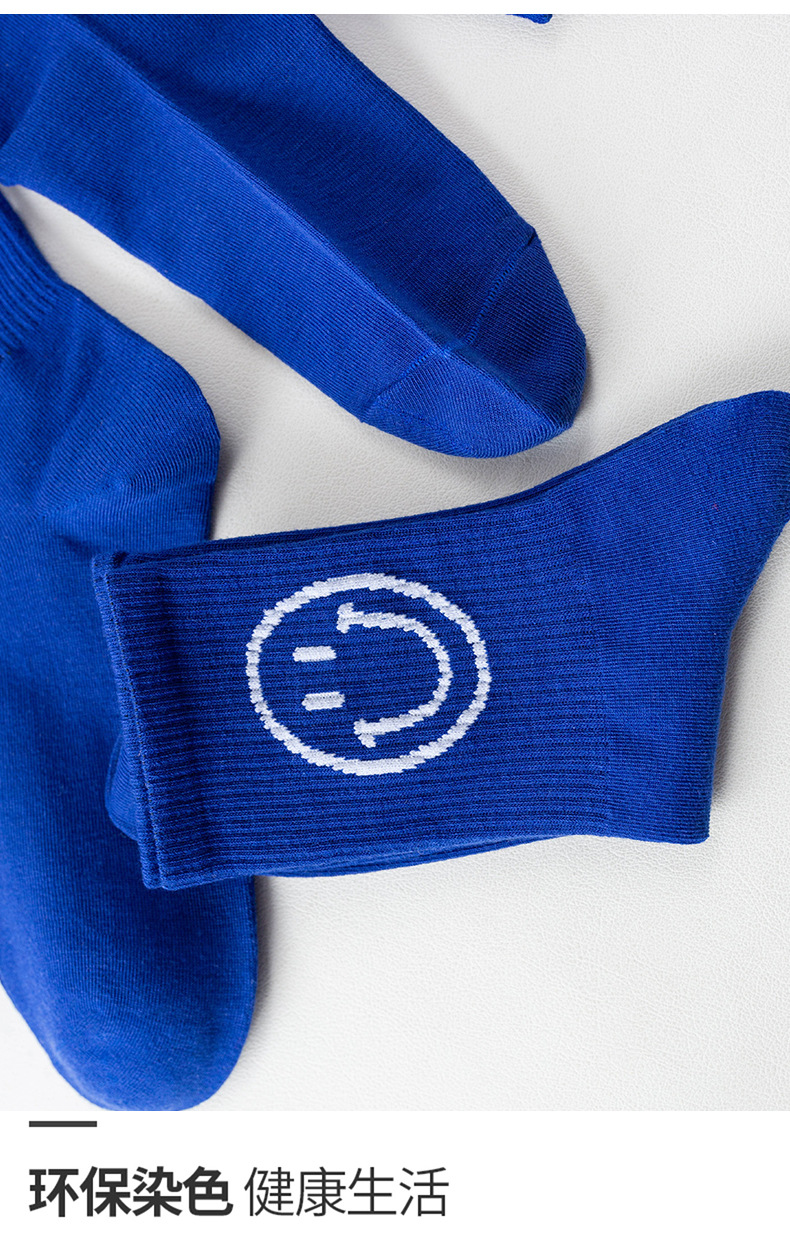 Calcetines de algodón de color puro de otoño e invierno de las mujeres letra grande C estudiante femenino ins moda media pantorrilla Klein azul abajo hilo calcetines de cara sonriente