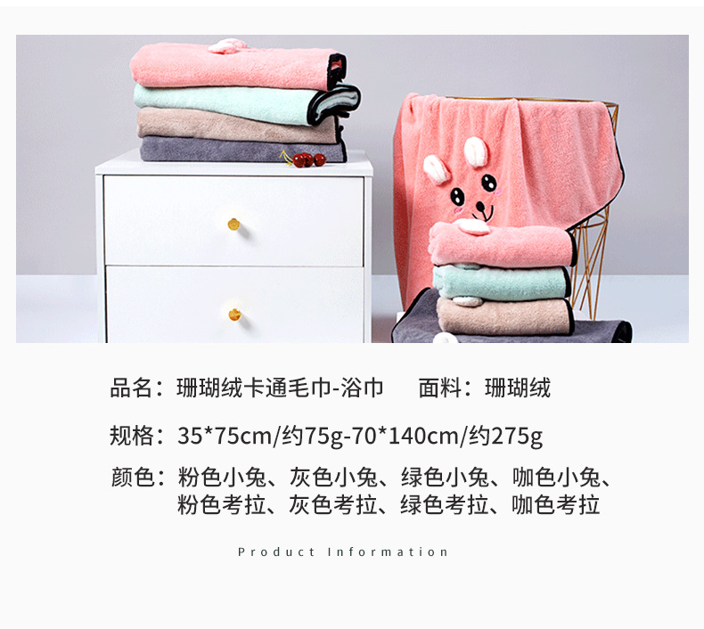 Toalla de terciopelo coral engrosada fuerte absorbente de secado rápido toalla de cara linda toalla de secado de pelo del hogar toalla de secado al por mayor