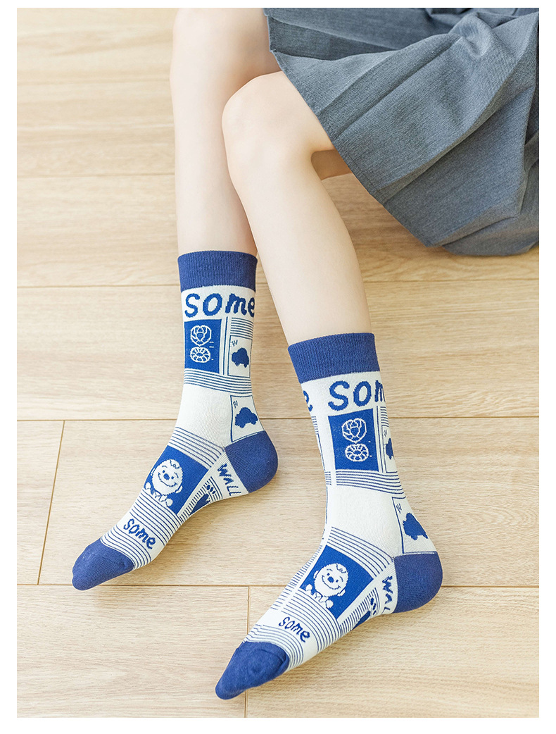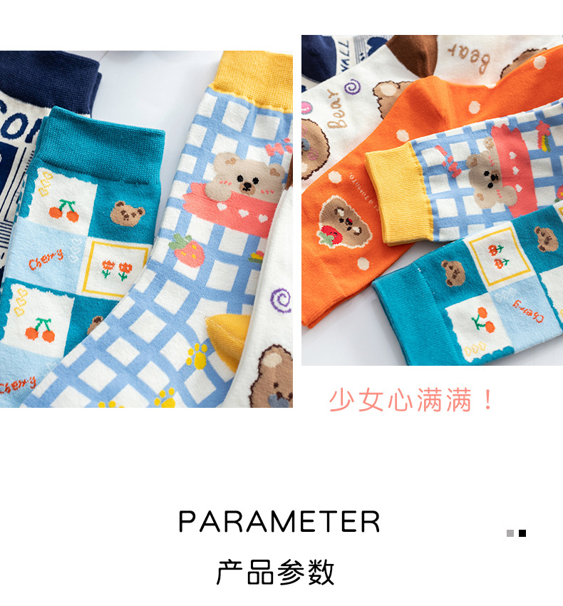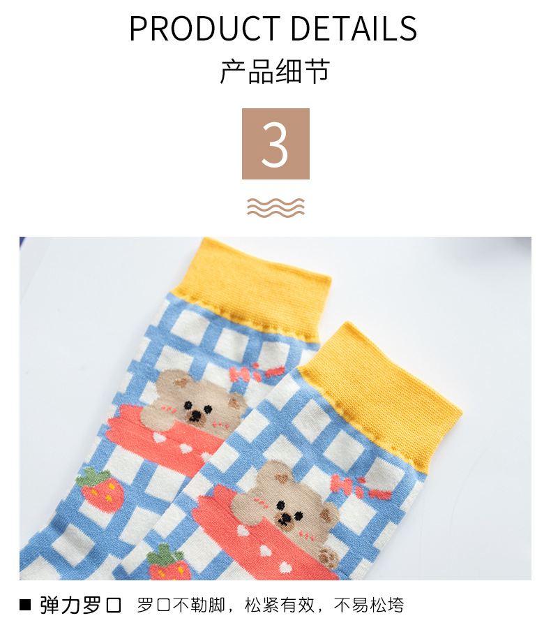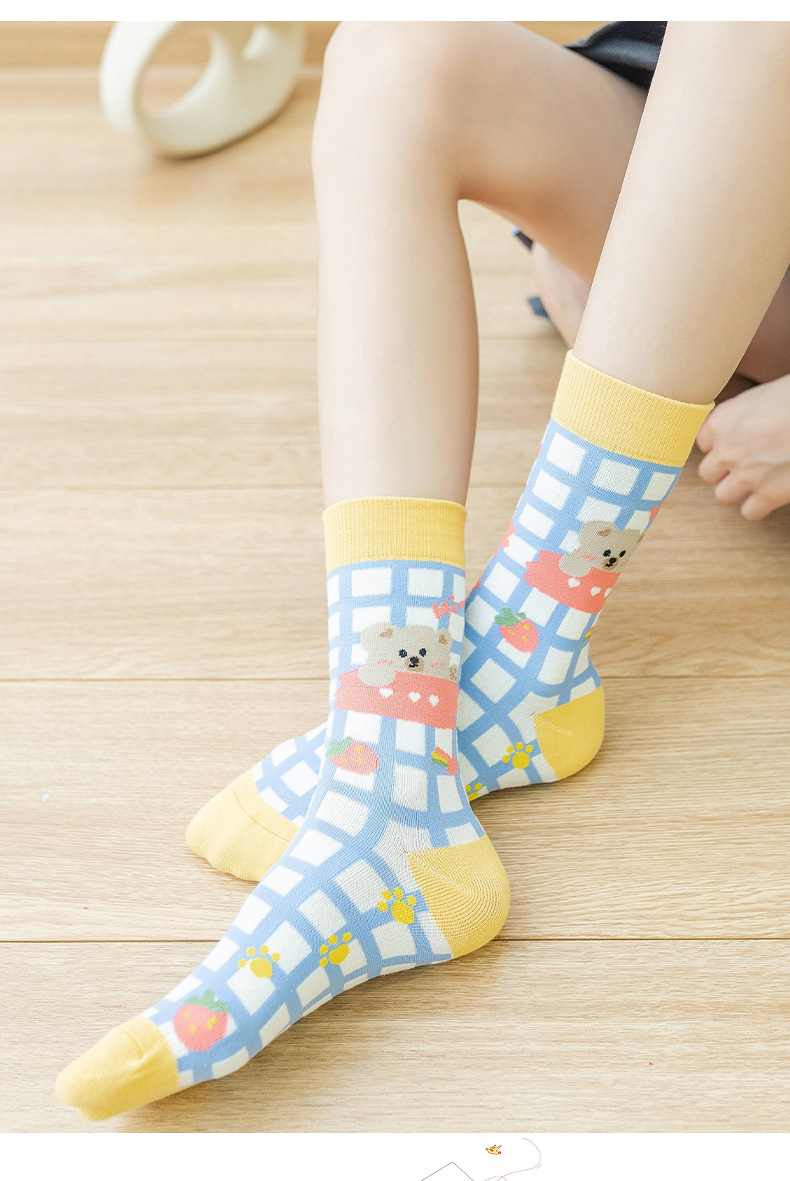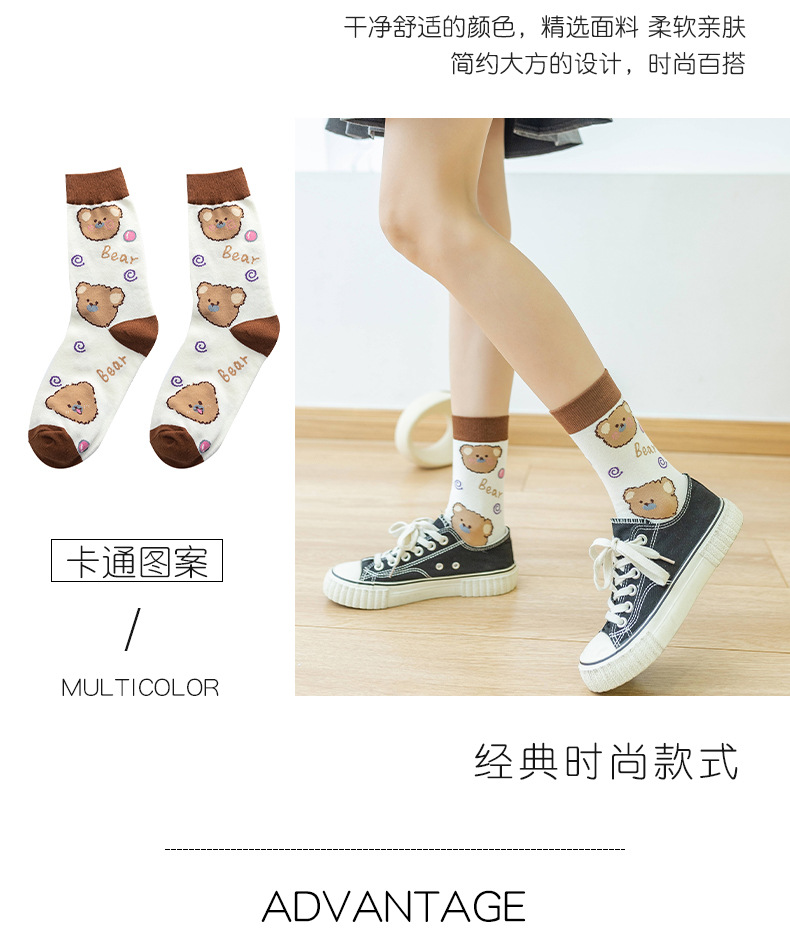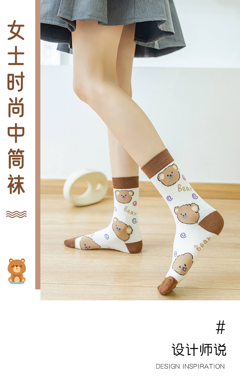 Calcetines de algodón de color puro de las mujeres de la mitad de la pantorrilla de dibujos animados lindo oso ins medias de moda al por mayor para la primavera, el otoño y los estudiantes de invierno
