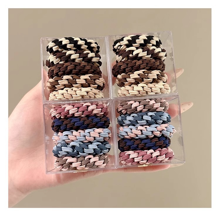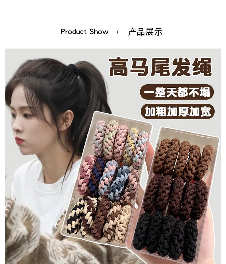 Banda de goma de alta elasticidad y duradera para mujer, lazo para el cabello tejido de cola de caballo alta, nuevo estuche de cuero, cuerda para la cabeza de mujer, tocado de cuerda para el cabello grueso de red