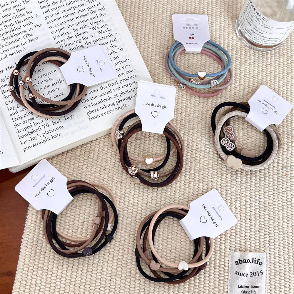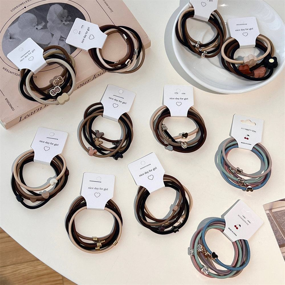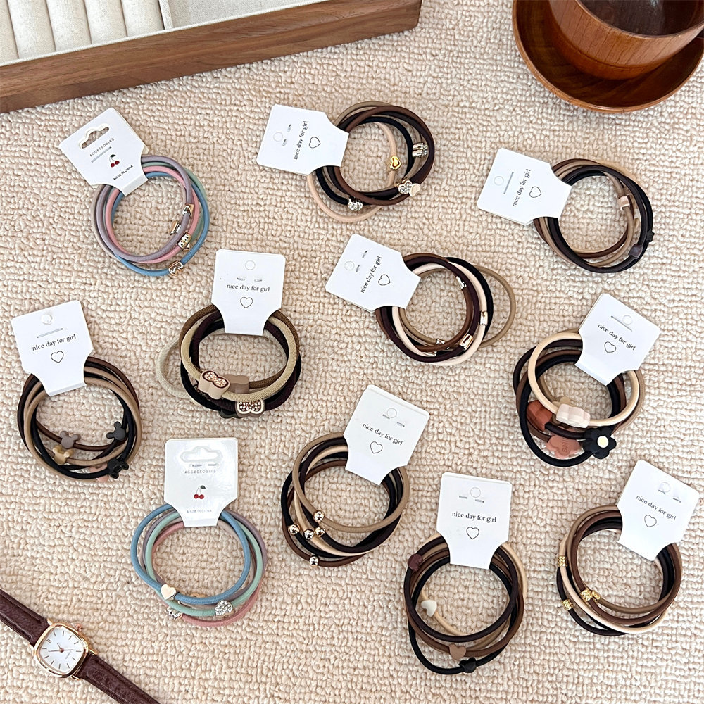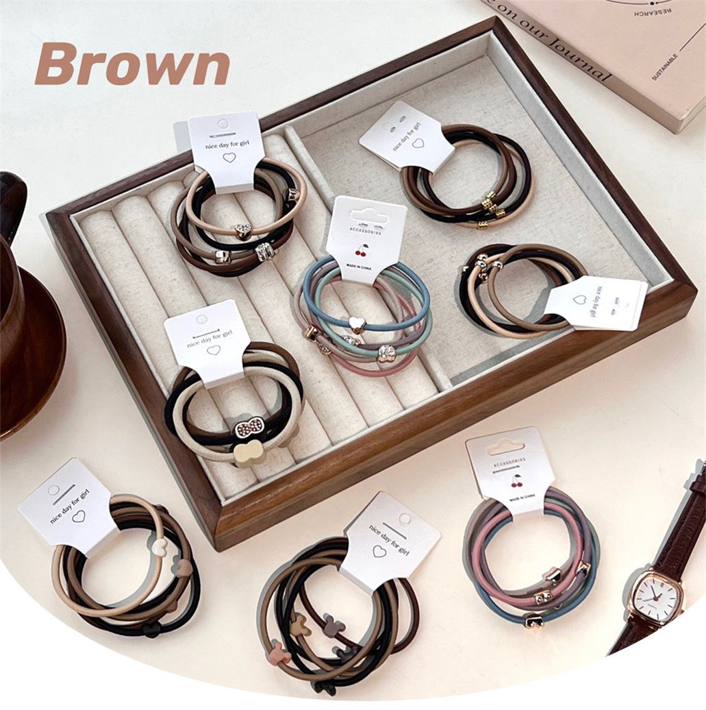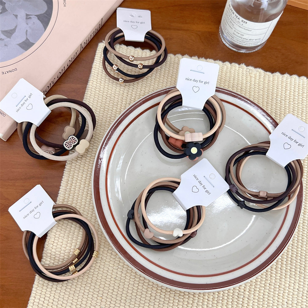 5 piezas de leche marrón banda de pelo traje de moda corbata de pelo banda de goma Morandi simple cuerda de pelo básico accesorios para el cabello