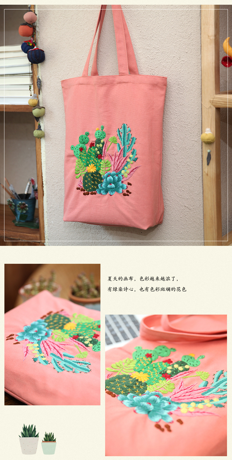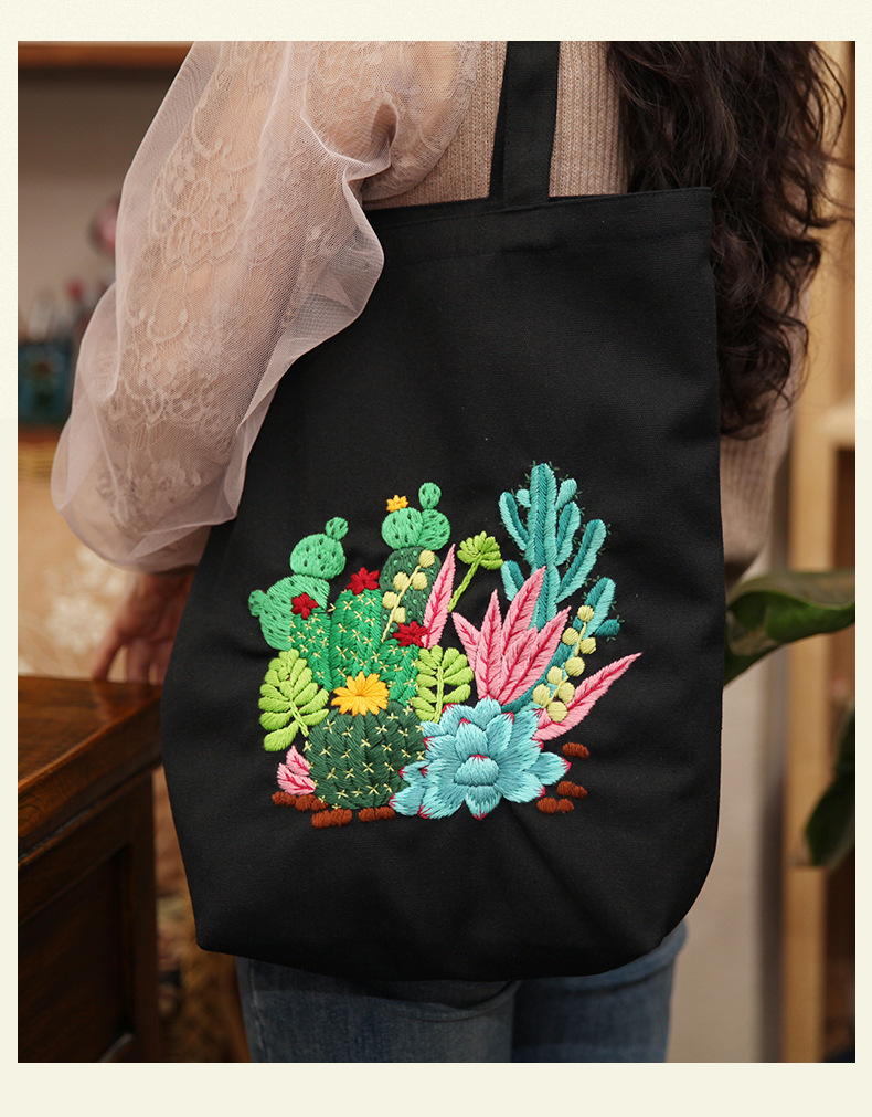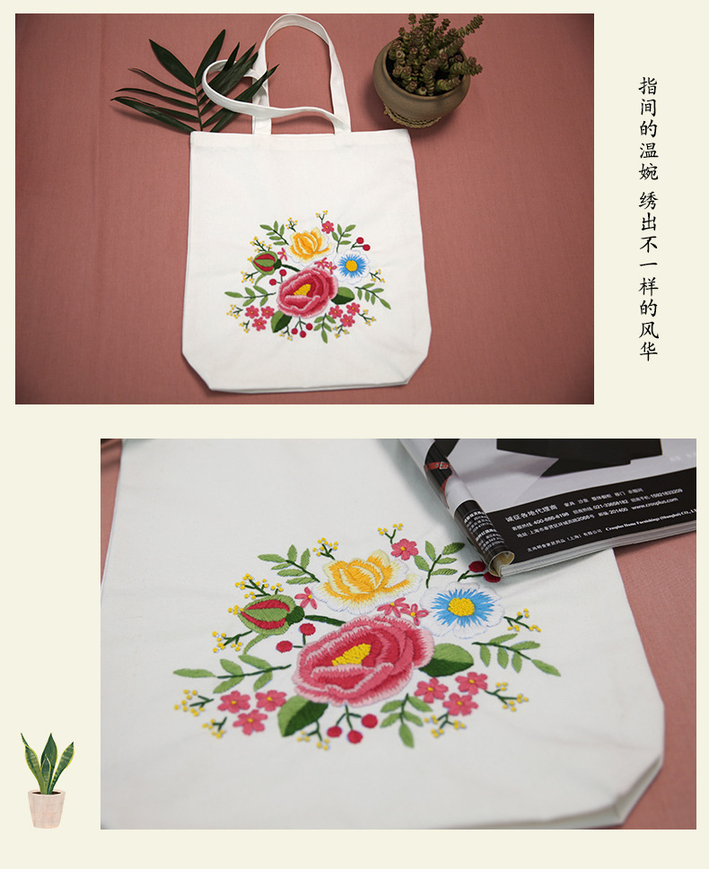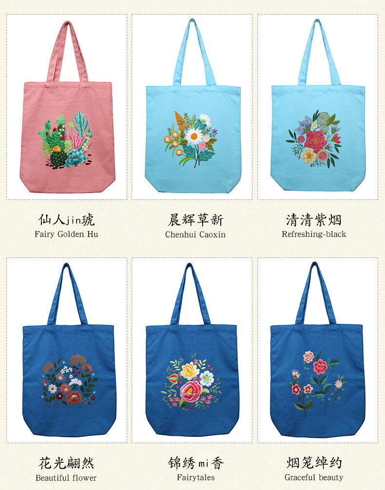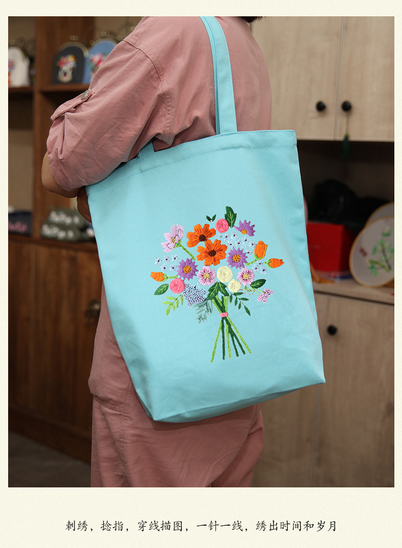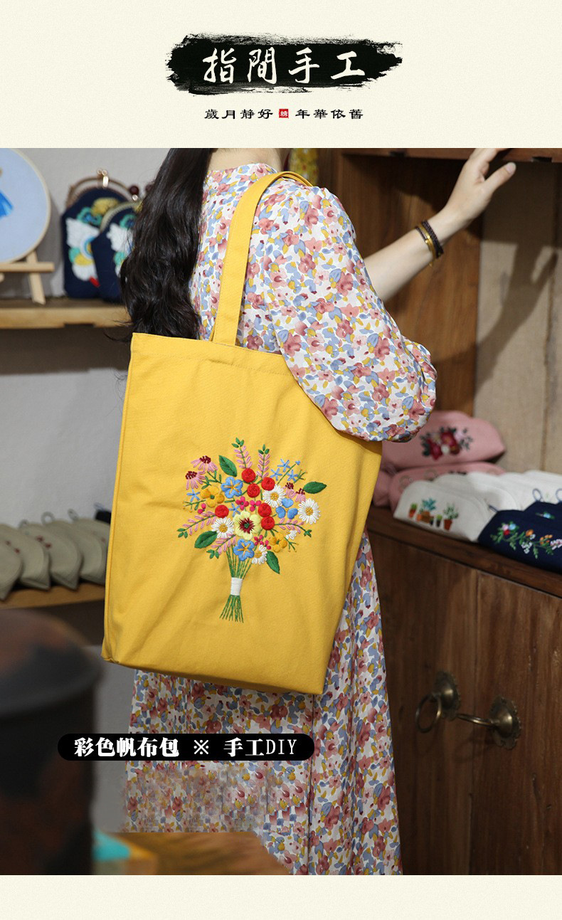 Suministro transfronterizo bordado DIY bolsa de lona Lu bordado hecho a mano bolsa de hombro bordado tridimensional inglés bolsa de lona